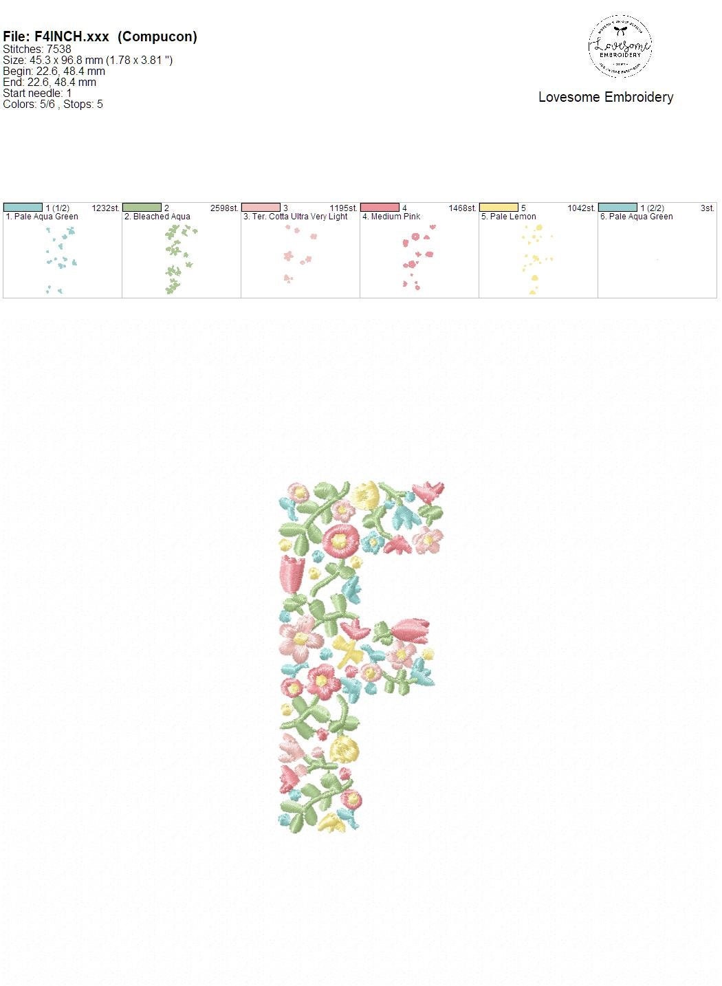 NEW Floral Letter F 4inch Machine Embroidery Design Dainty Flowers Letters in Spring Colors Digital Download | Lovesome Design