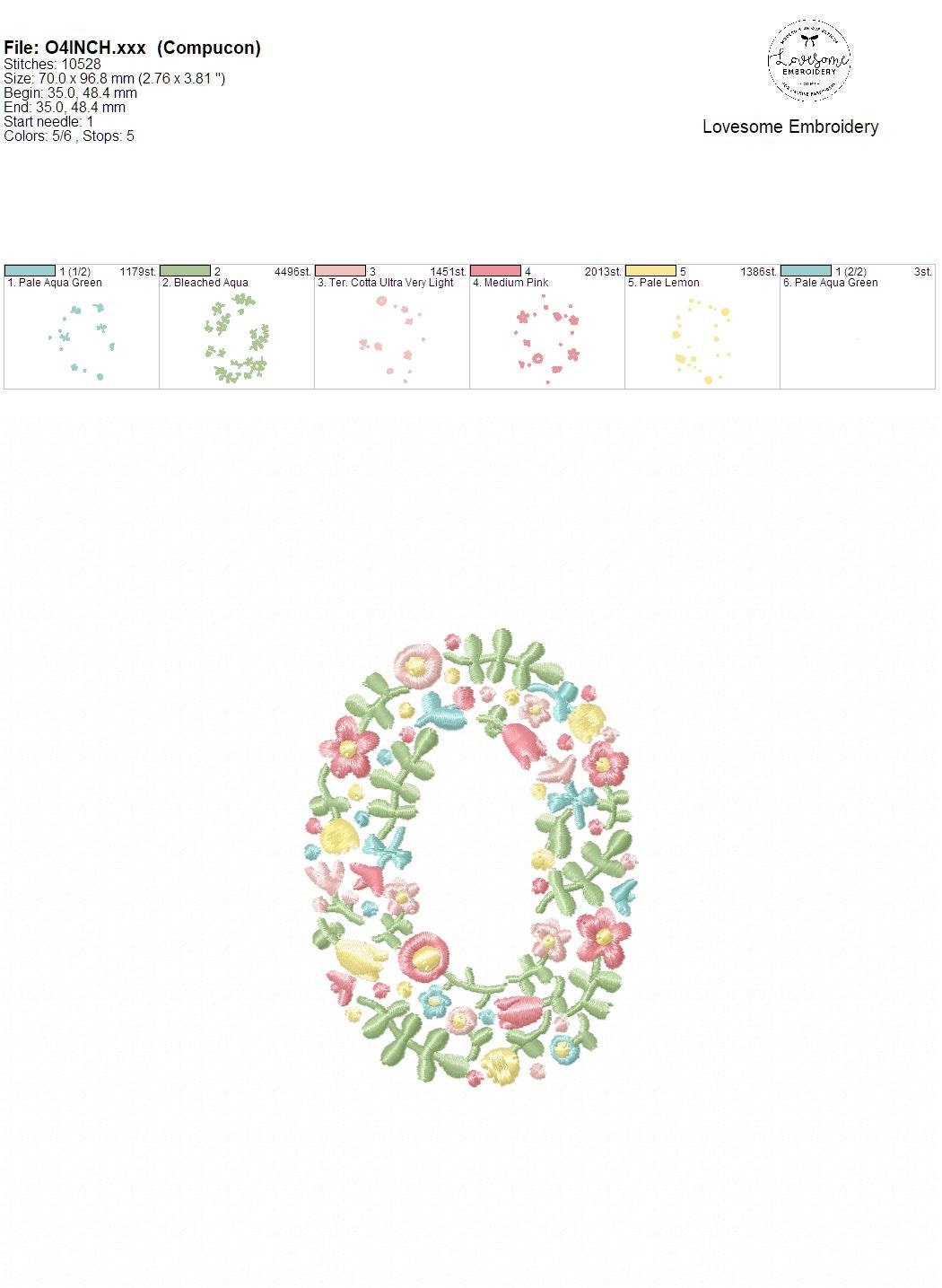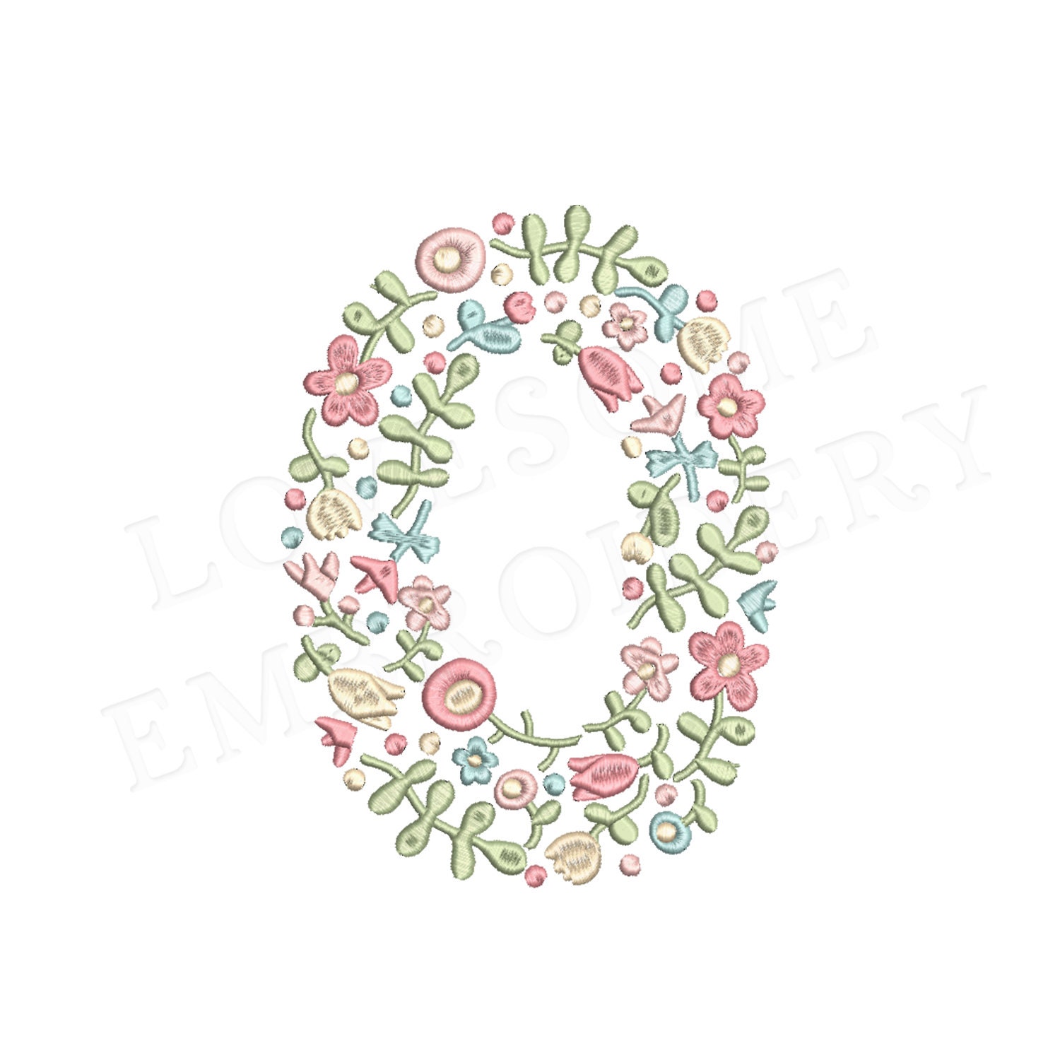 NEW Floral Letter O 4inch Machine Embroidery Design Dainty Flowers Letters in Spring Colors Digital Download | Lovesome Design