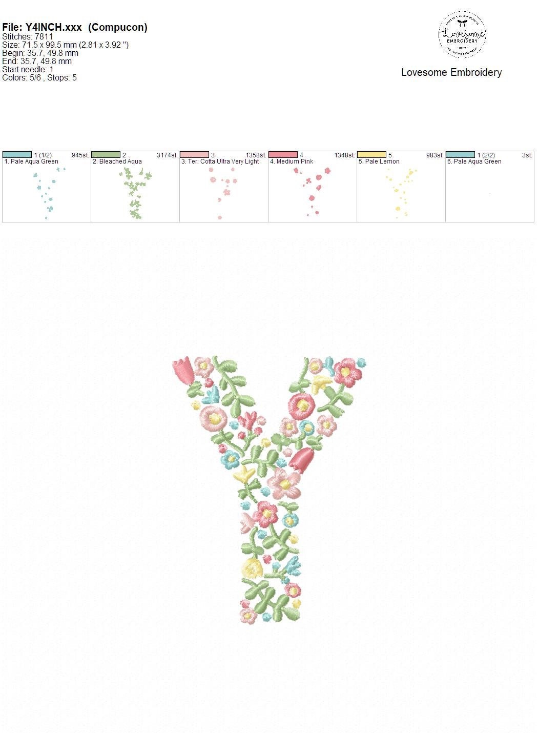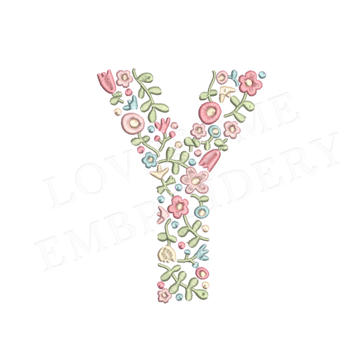 NEW Floral Letter Y 4inch Machine Embroidery Design Dainty Flowers Letters in Spring Colors Digital Download | Lovesome Design