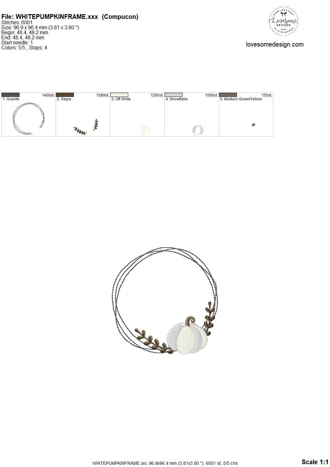 Pumpkin Wreath 4inch Machine Embroidery Design Digital Download | Lovesome Design