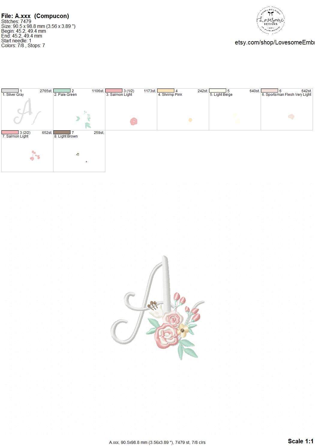 You can find the details like exact size, stitch count and color chart on the technical document which can be viewed within listings images.