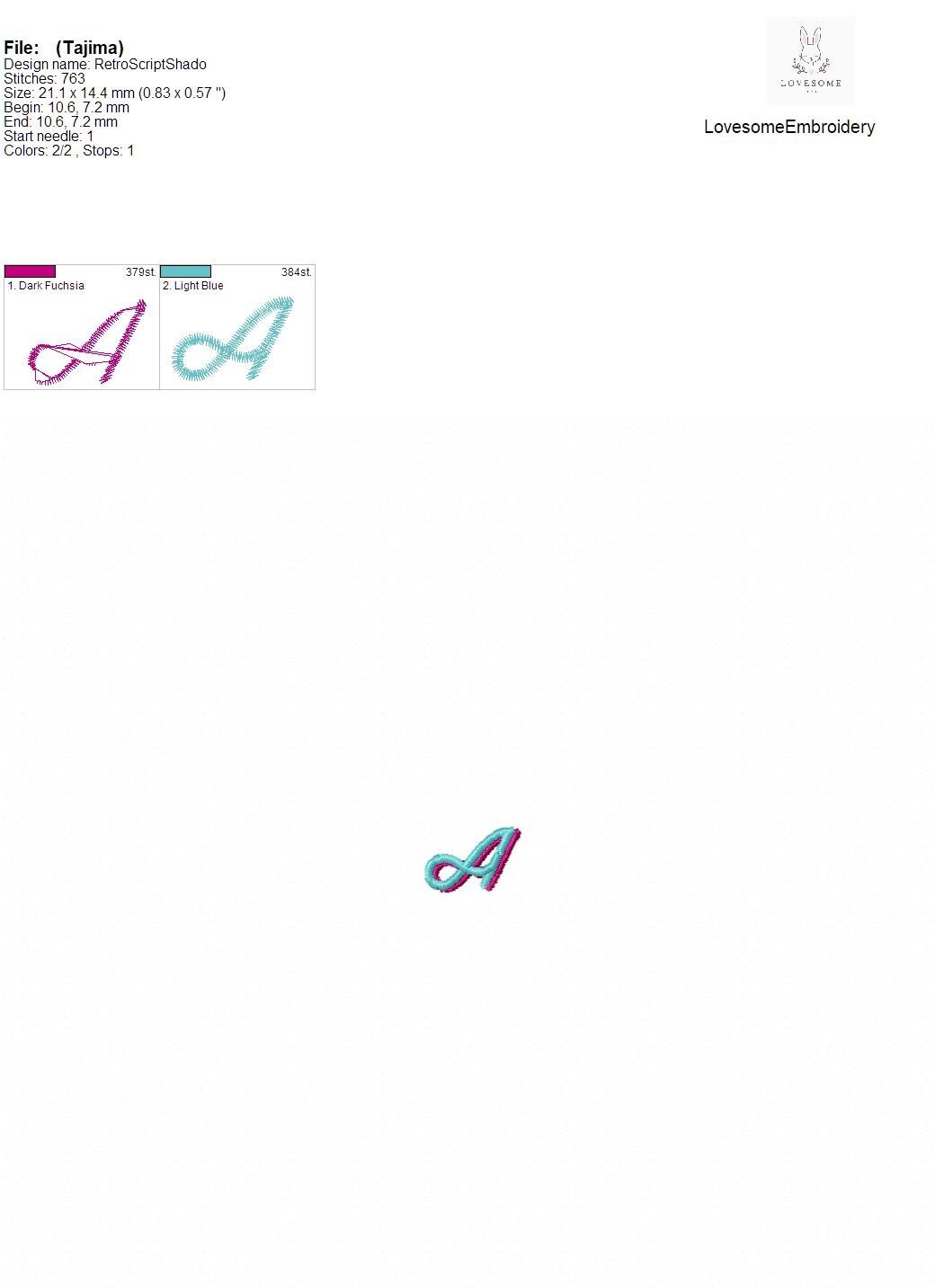 Retro Shadow 0.5inch Script Font A-Z Machine Embroidery Font Digital Download | Lovesome Design