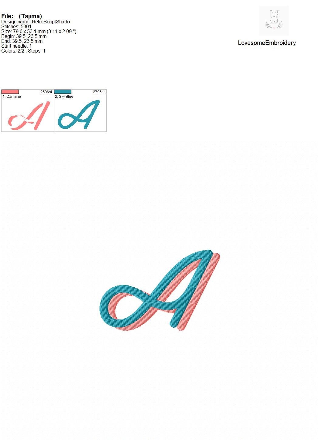 Retro Shadow 2inch Script Font A-Z Machine Embroidery Font Digital Download | Lovesome Design