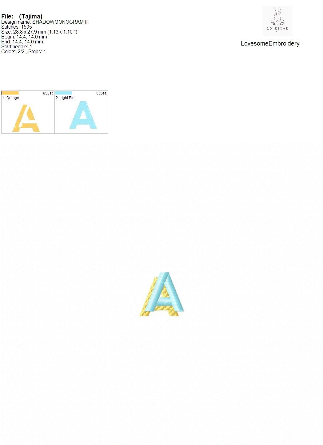 This listing features a machine embroidery font set which includes embroidery files of 26 uppercase monogram shadow letters and 0-9 numbers in 1inch size. (For the whole set, pls see the listing images.)