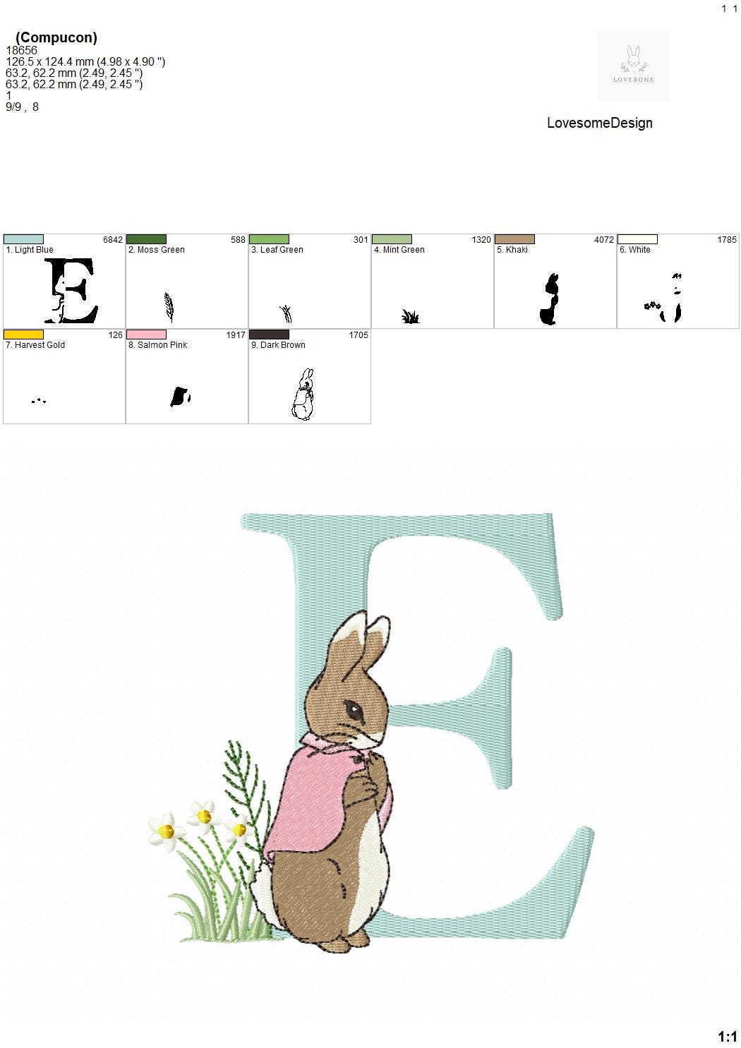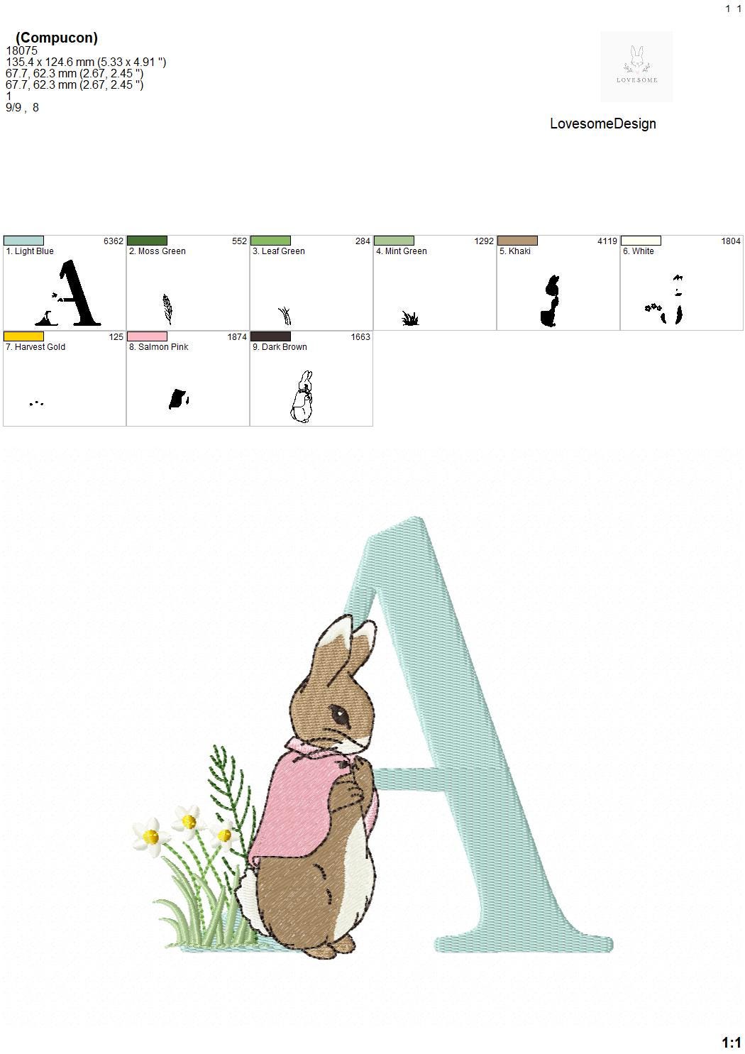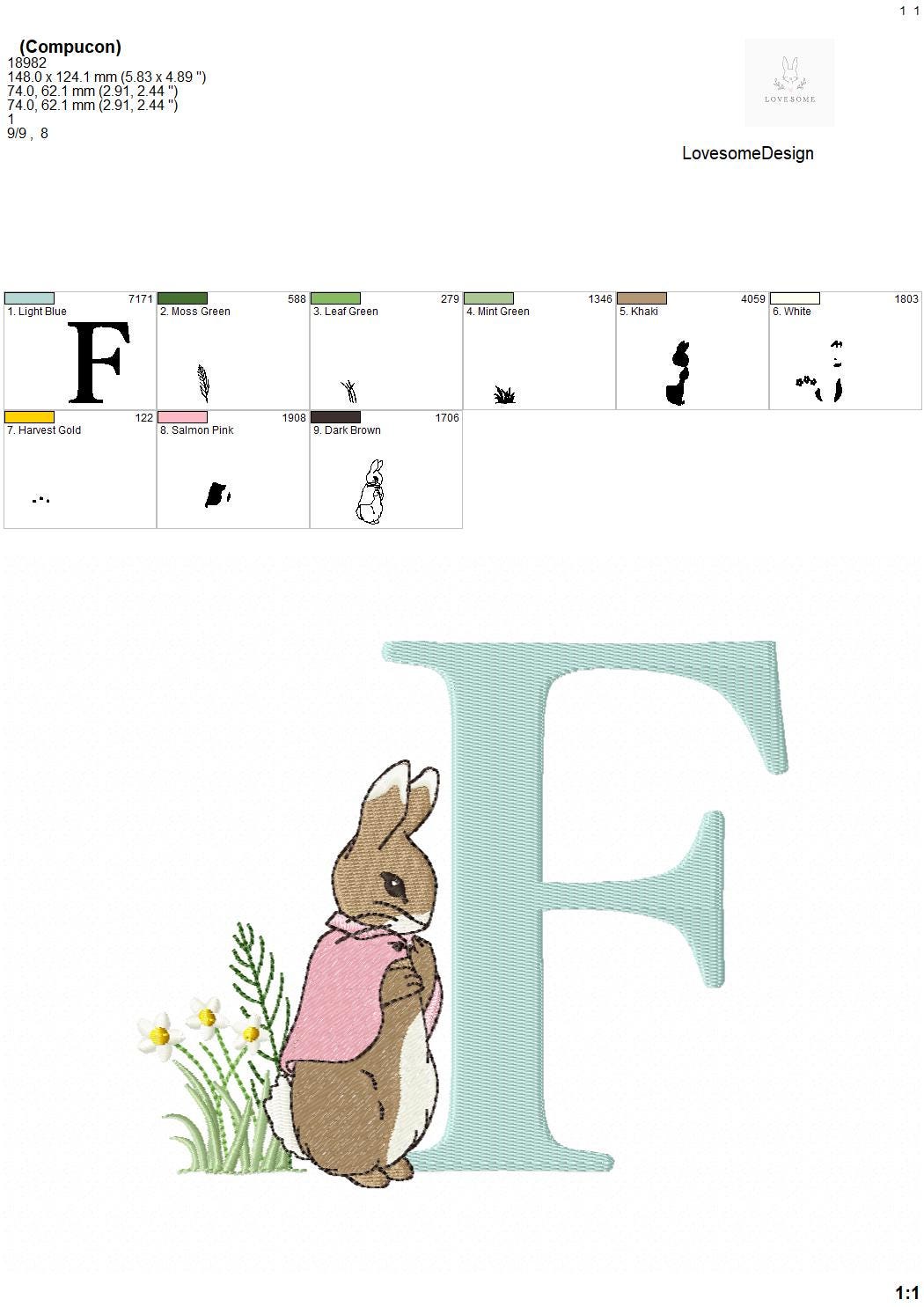 This listing features a machine embroidery font set which includes embroidery files of 26 uppercase monogram letters with Cottontail Rabbit design in 5inch size. (For the whole set, pls see the listing images.)