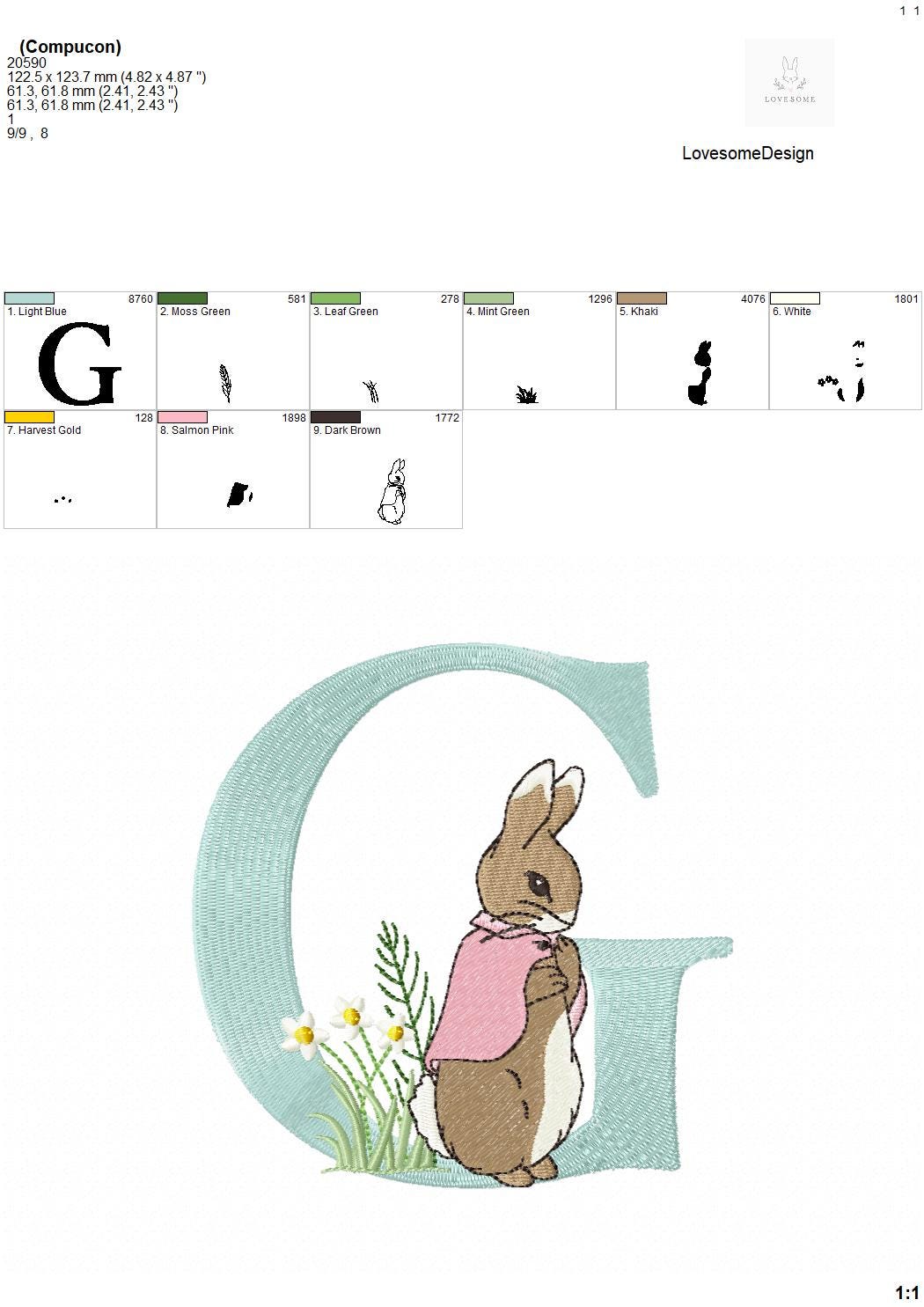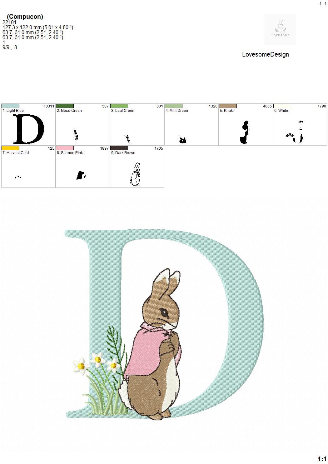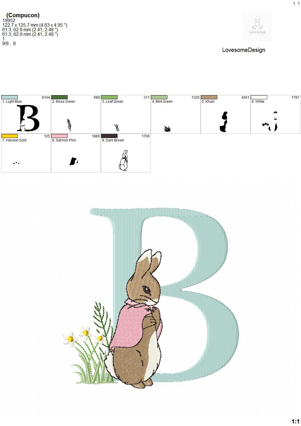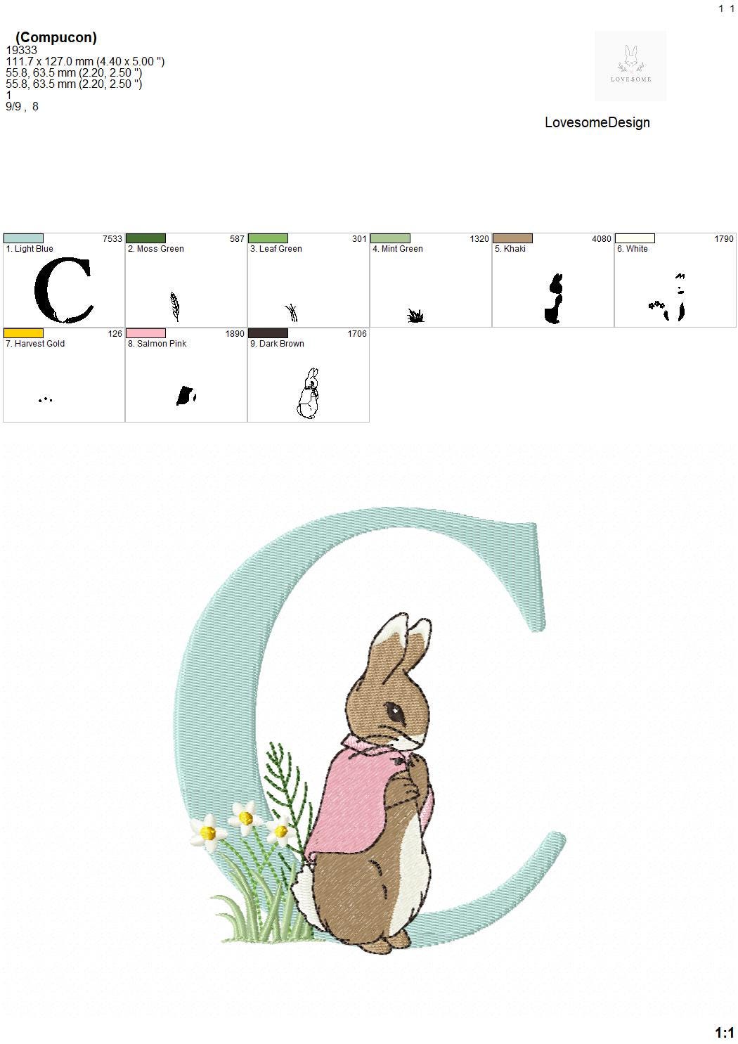 This listing features a machine embroidery font set which includes embroidery files of 26 uppercase monogram letters with Cottontail Rabbit design in 5inch size. (For the whole set, pls see the listing images.)