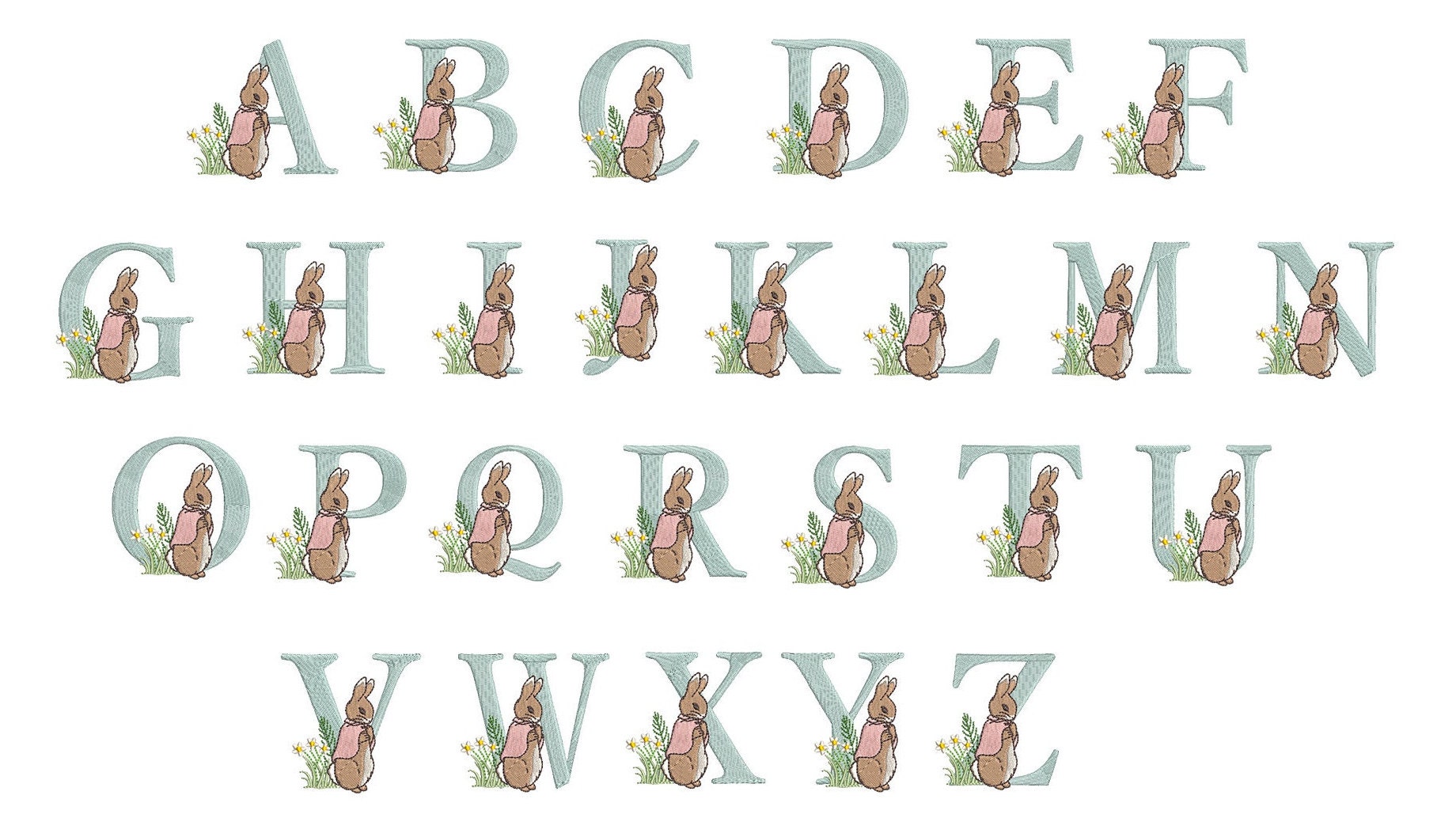 Cottontail Rabbit 5inch Alphabet A-Z Machine Embroidery Font Digital Download | Lovesome Design