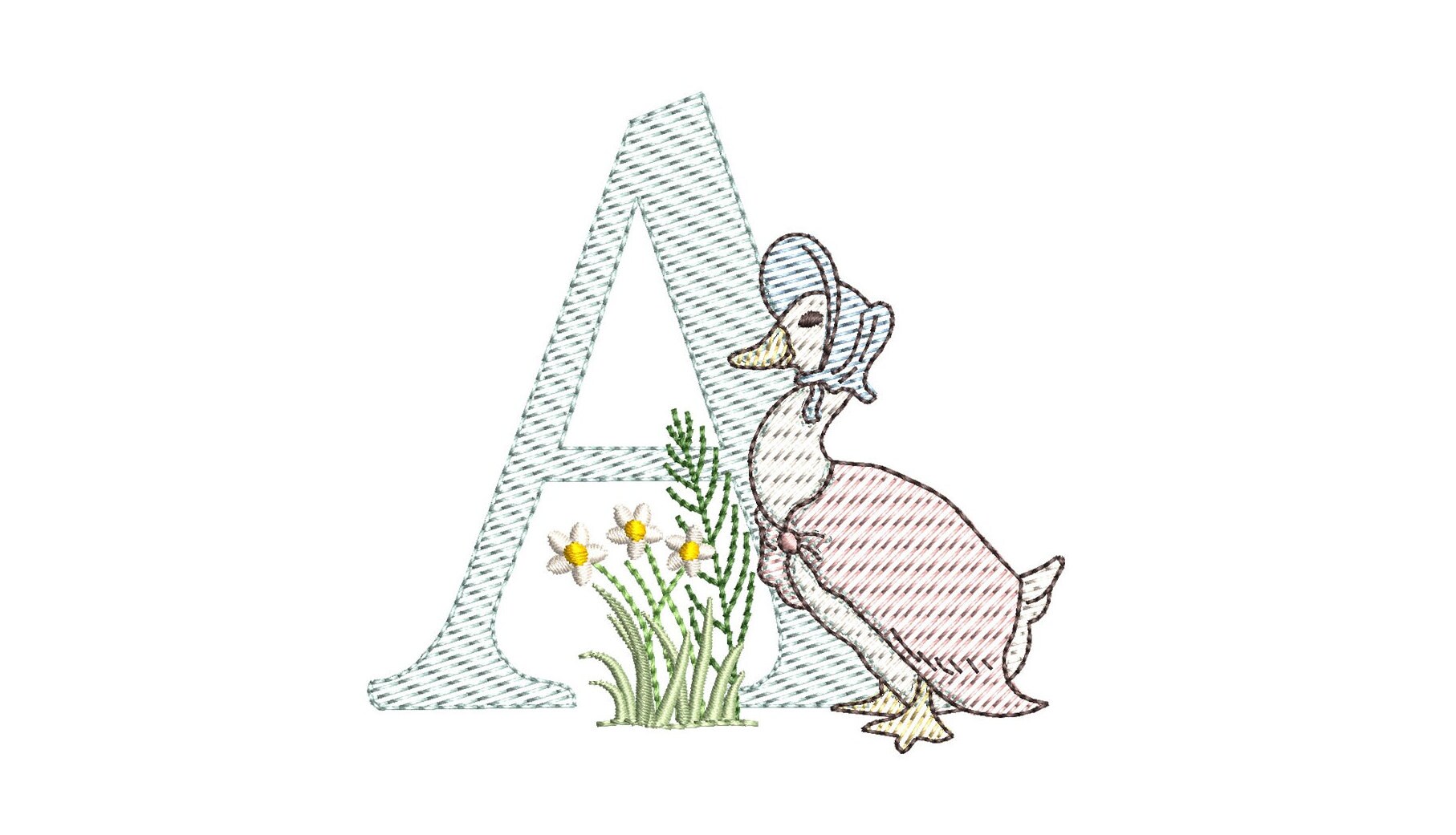 Jemima Puddleduck 4inch Quick Stitch Alphabet A-Z Machine Embroidery Font Digital Download | Lovesome Design