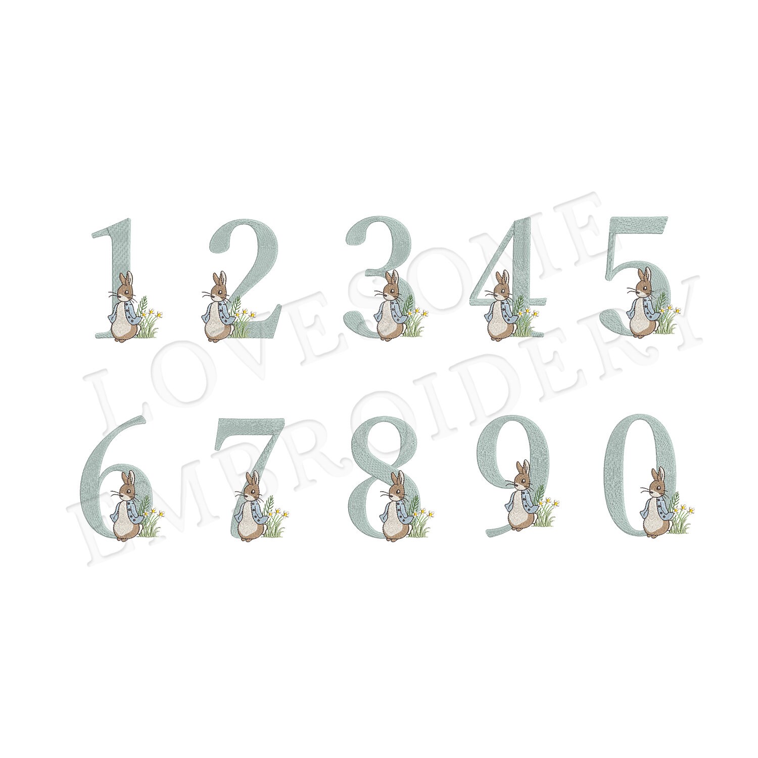 Numbers Peter Rabbit 5inch 0-9 Machine Embroidery Numbers Digital Download | Lovesome Design