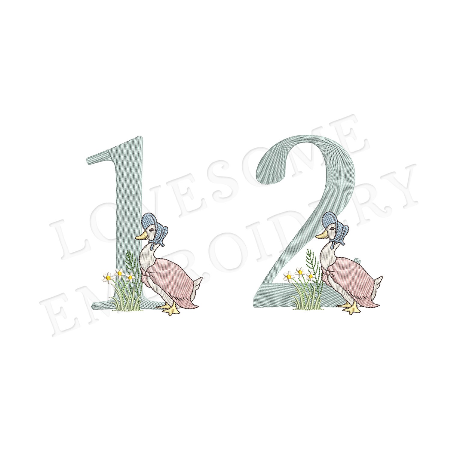 Numbers Jemima Puddleduck 5inch 0-9 Machine Embroidery Numbers Digital Download | Lovesome Design
