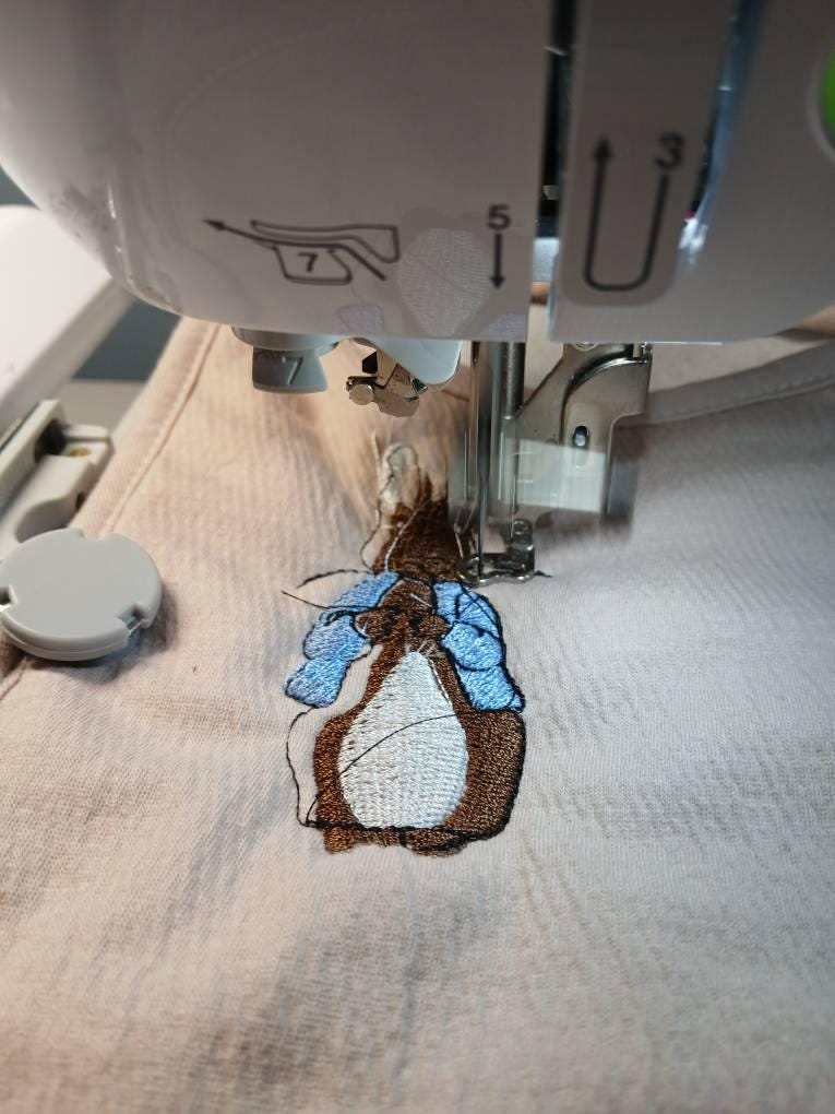 Perfect for our Baby Blanket project. Stitched perfectly. Last colour change (back to bunny colour) is a nothing, does not stitch anything, so don't waste your time changing thread. Forgot to take a picture before it was taken away but it turned out well.