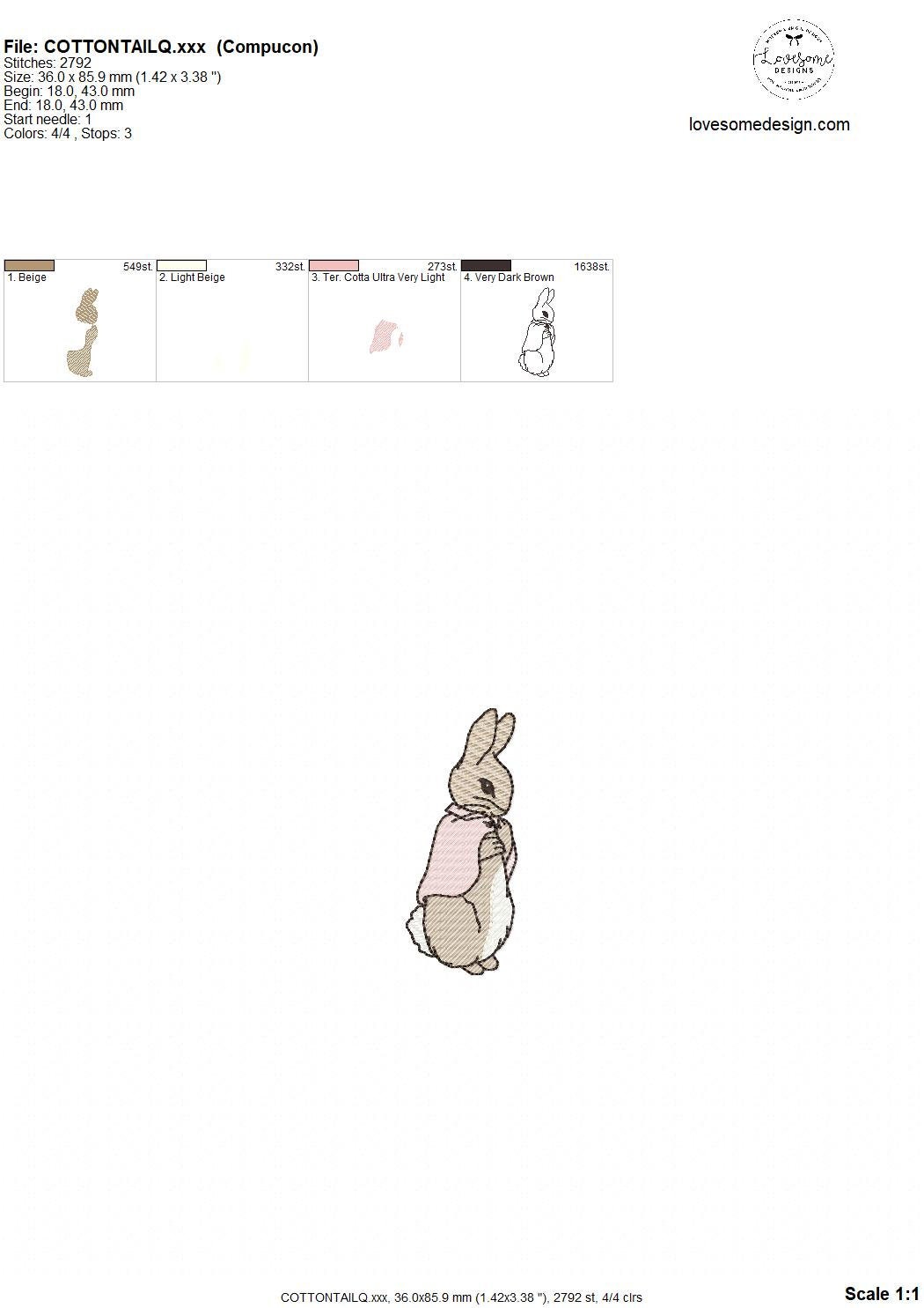 Cottontail Rabbit 3.5inch Quick Stitch Machine Embroidery Design Digital Download | Lovesome Design