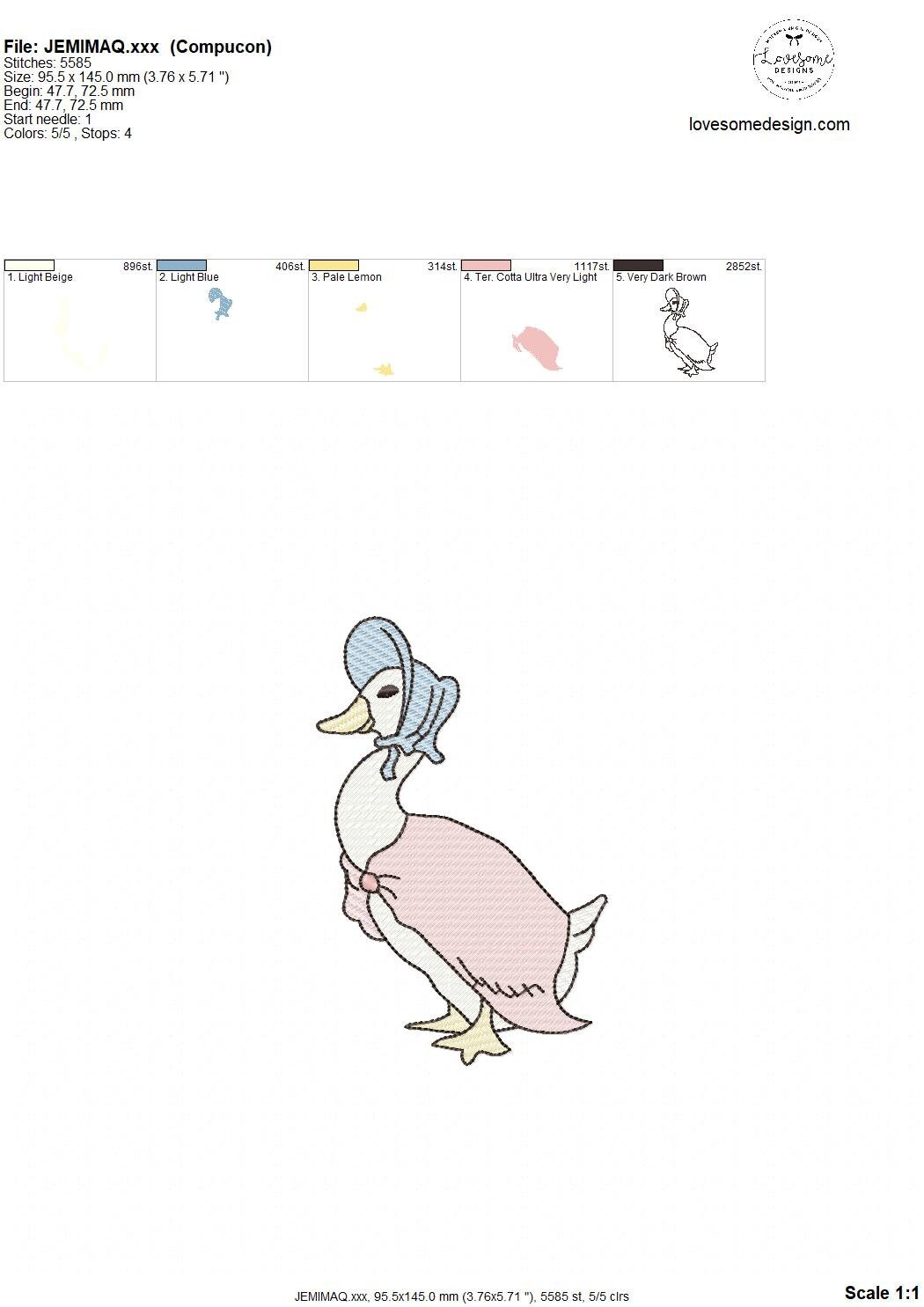 Jemima Puddleduck 6inch Quick Stitch Machine Embroidery Design Digital Download | Lovesome Design