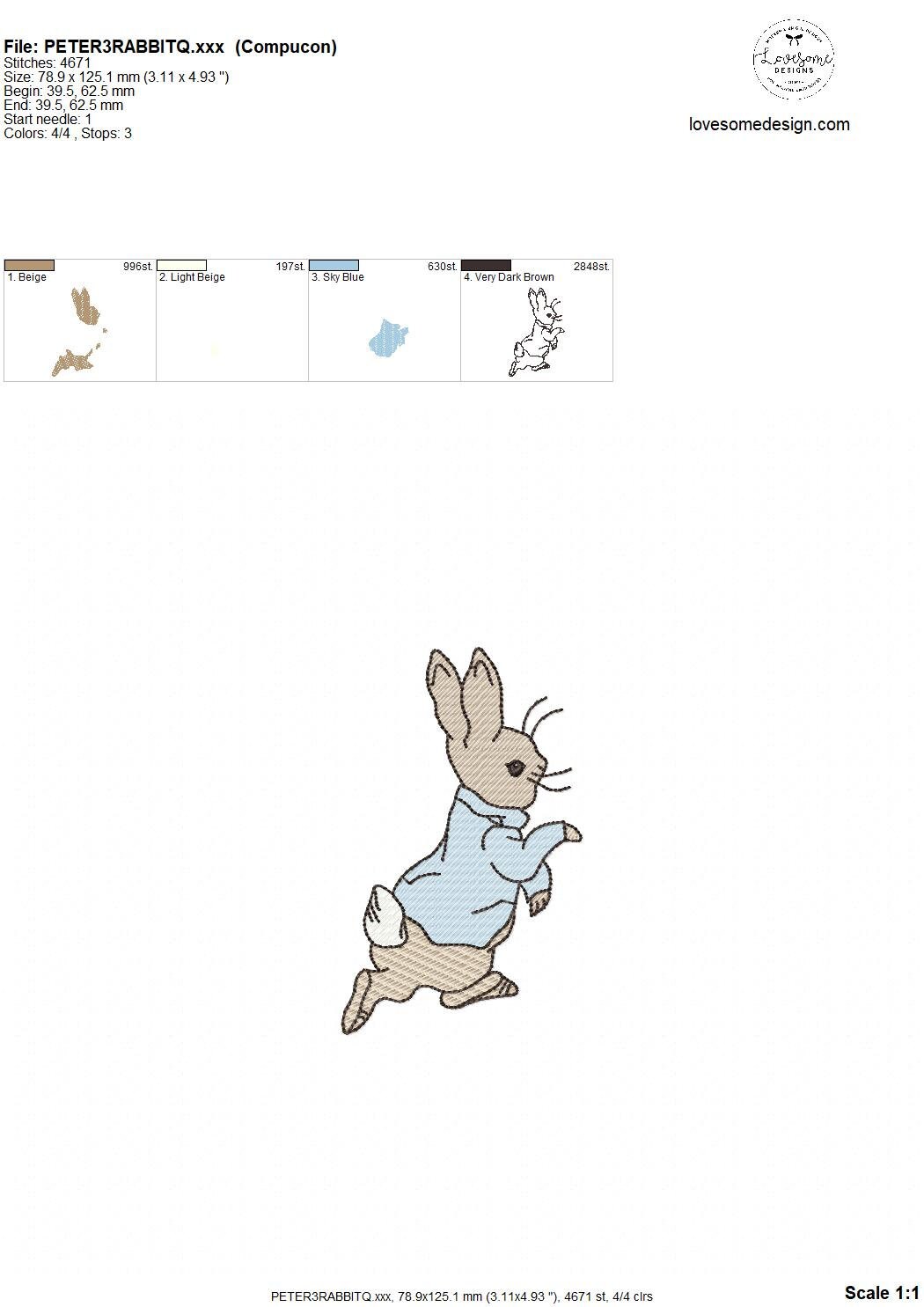Peter Rabbit 5inch Quick Stitch Machine Embroidery Design Digital Download | Lovesome Design