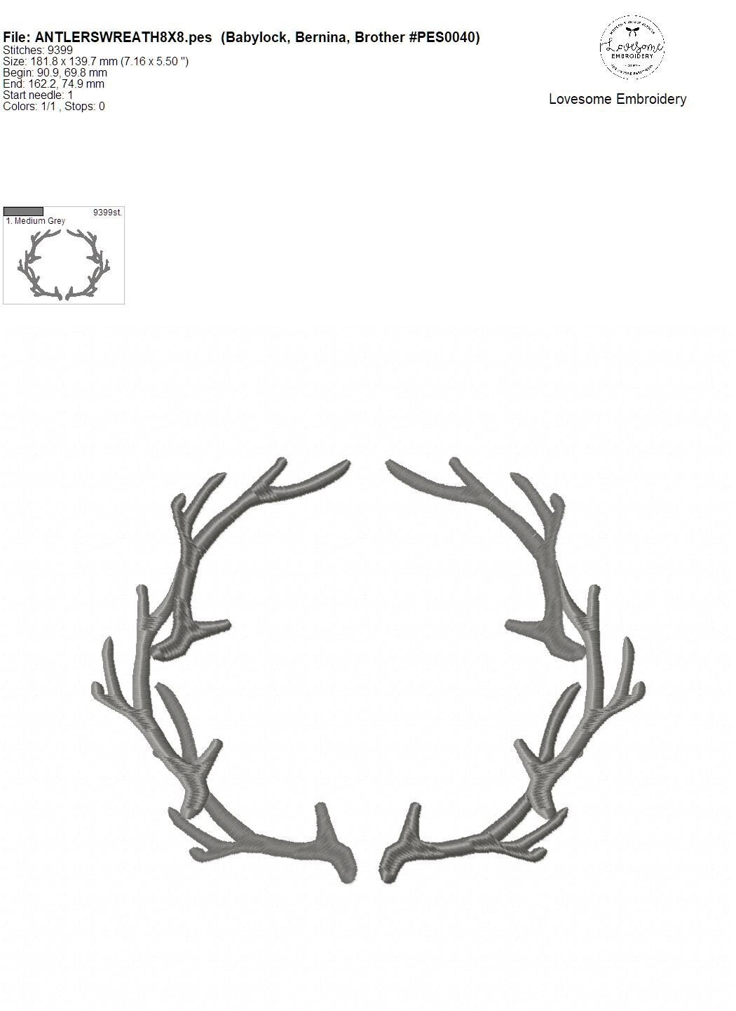 This listing features a machine embroidery file of antlers wreath design in 8 inch size.