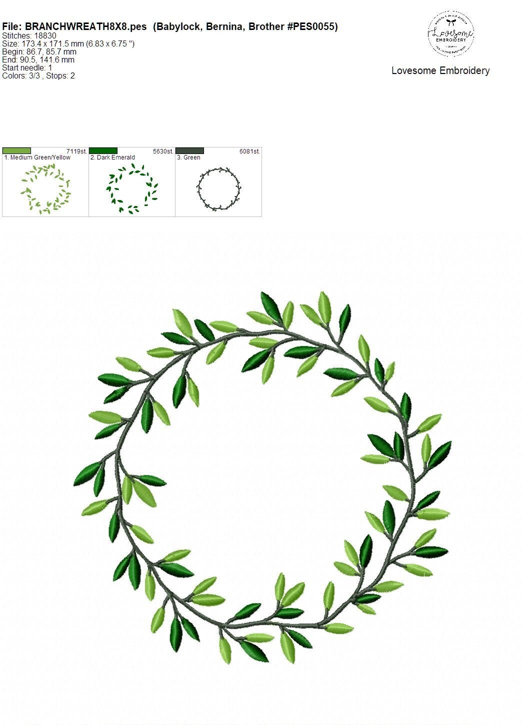 This listing features a machine embroidery file of branch wreath design in 8 inch size.