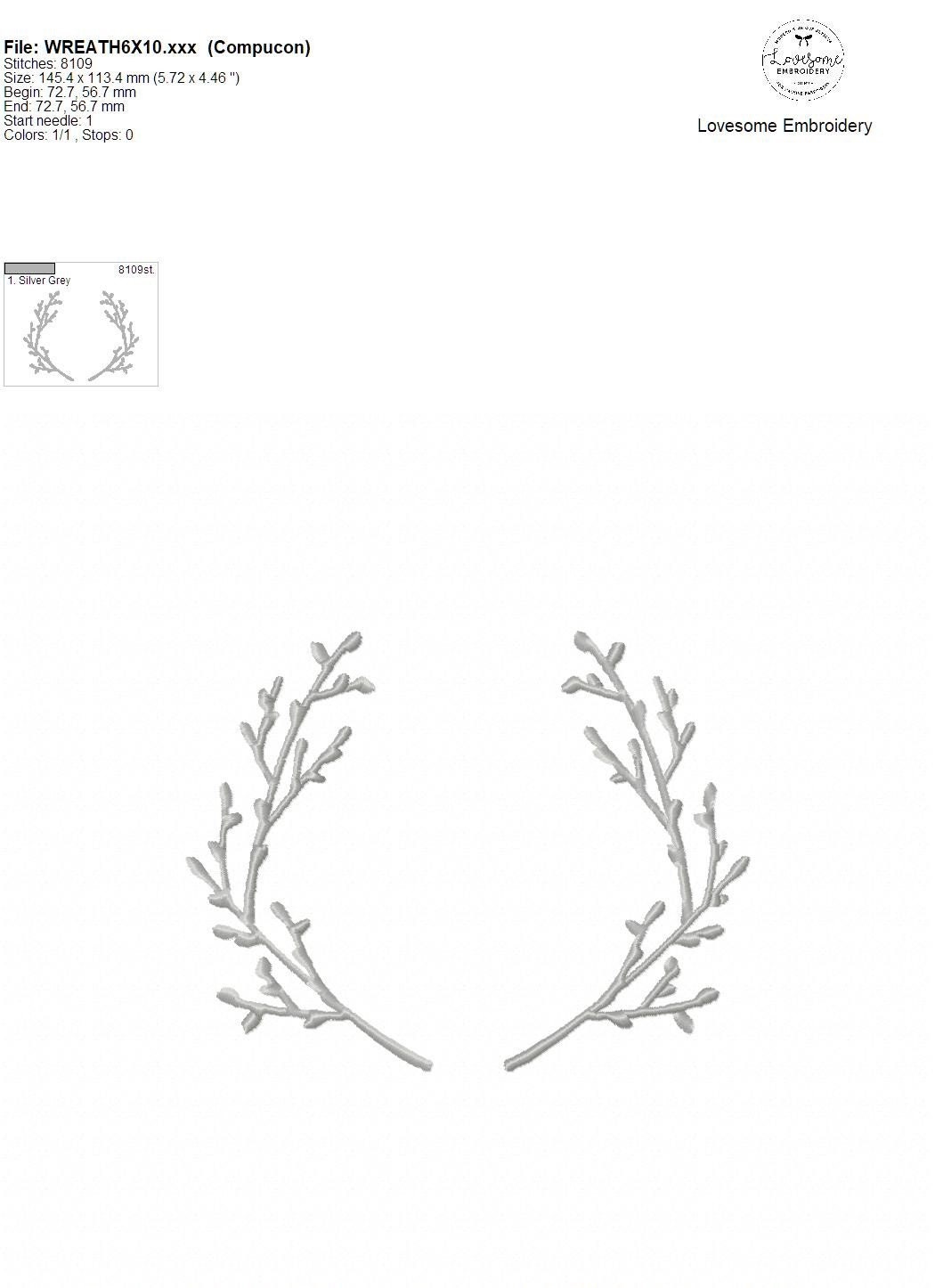 This listing features a machine embroidery file of an elegant wreath design in 6 inch size.