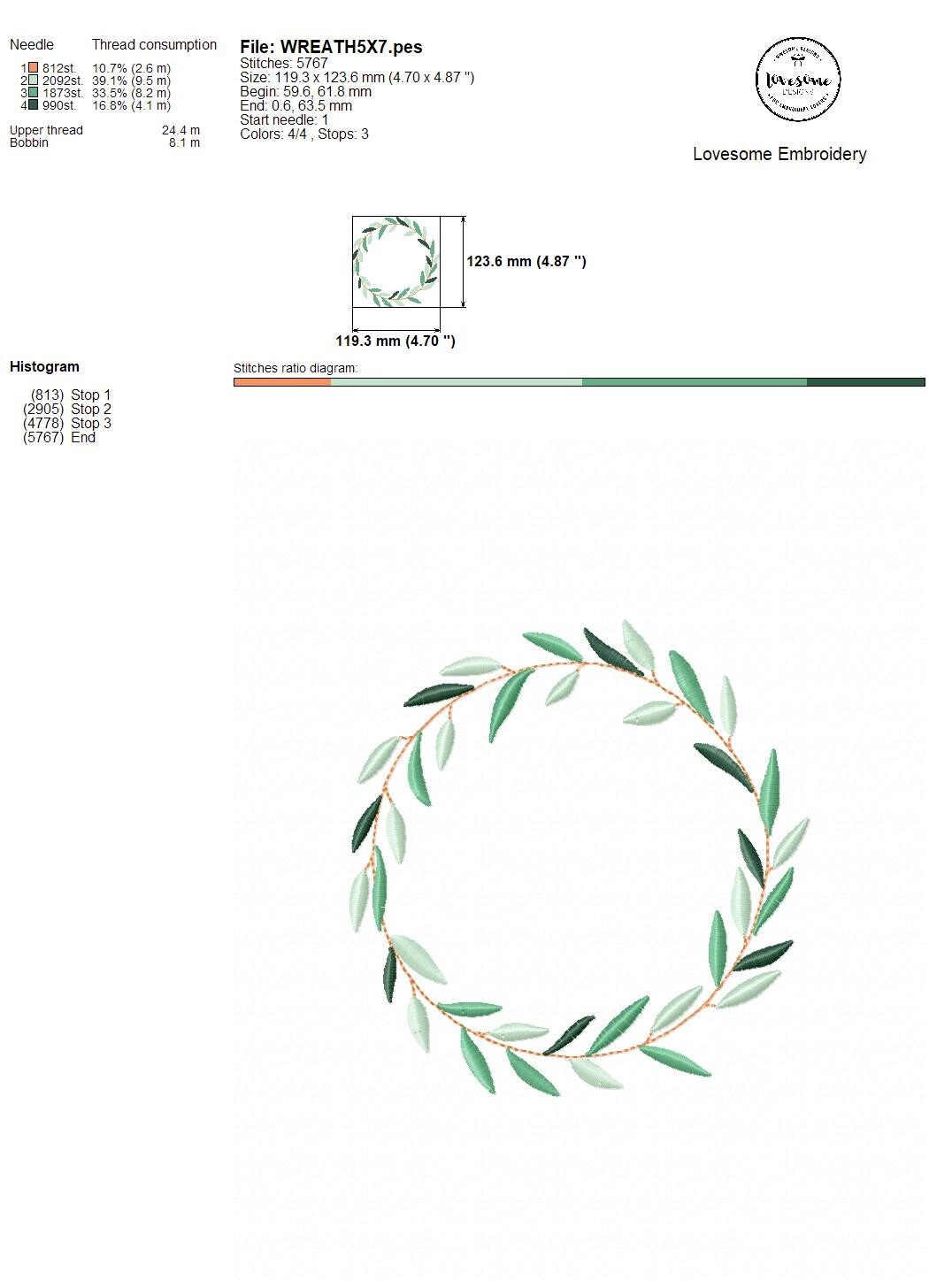 This listing features a machine embroidery file of a stylish branch wreath design in 5 inch size.