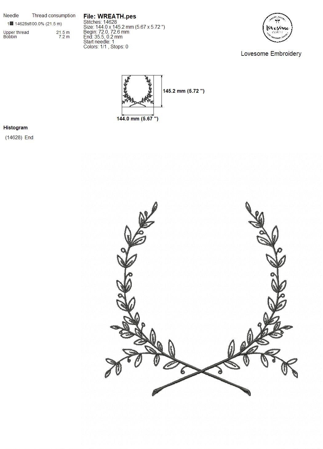This listing features a machine embroidery file of an excuisite branch wreath design in 6 inch size.