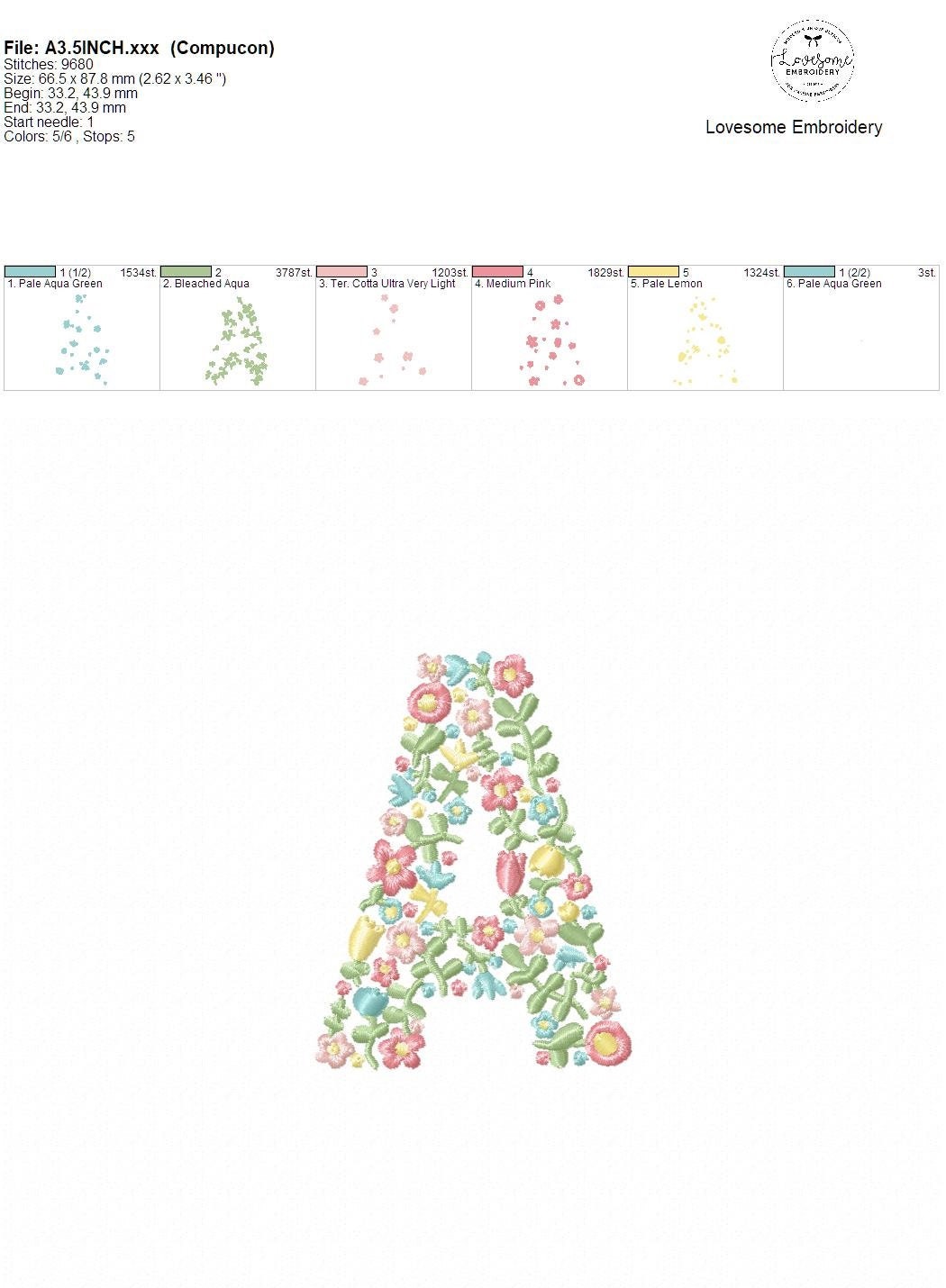 NEW Floral Alphabet 3.5inch A-Z Machine Embroidery Font Dainty Flowers Letters in Spring Colors Digital Download | Lovesome Design