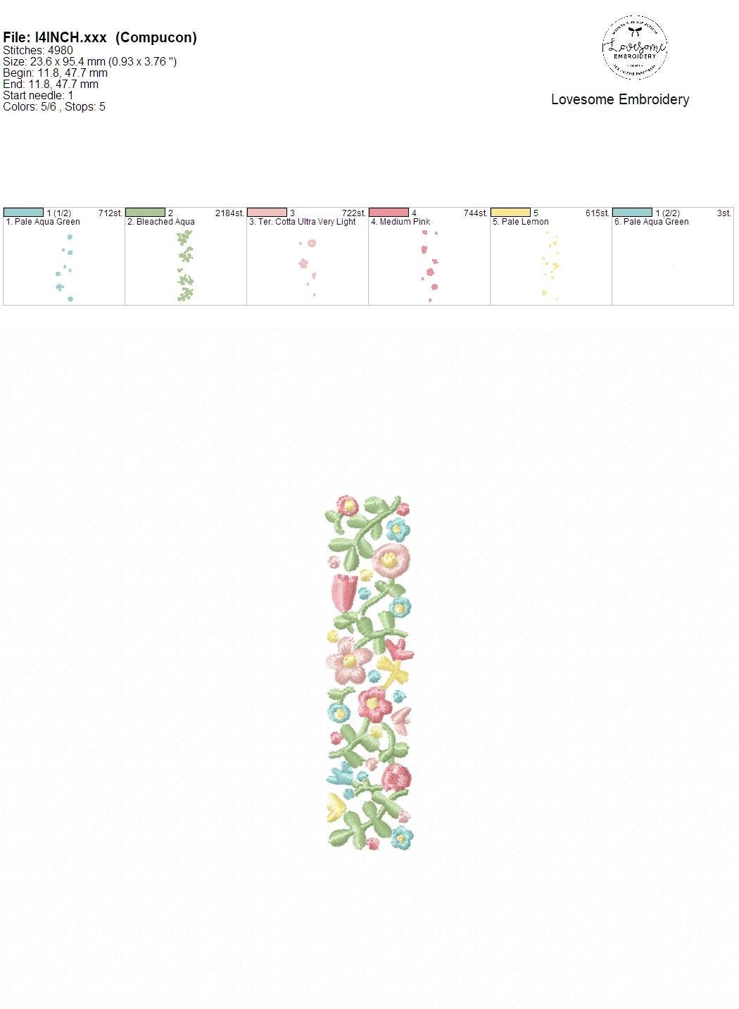 NEW Floral Letter I 4inch Machine Embroidery Design Dainty Flowers Letters in Spring Colors Digital Download | Lovesome Design