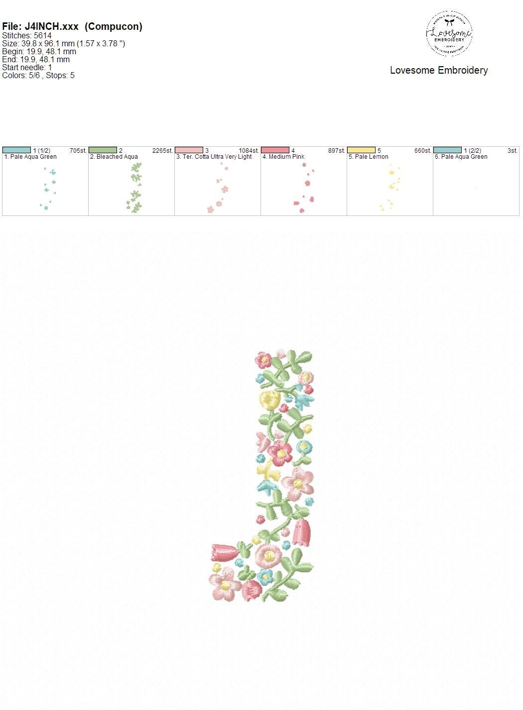 NEW Floral Letter J 4inch Machine Embroidery Design Dainty Flowers Letters in Spring Colors Digital Download | Lovesome Design