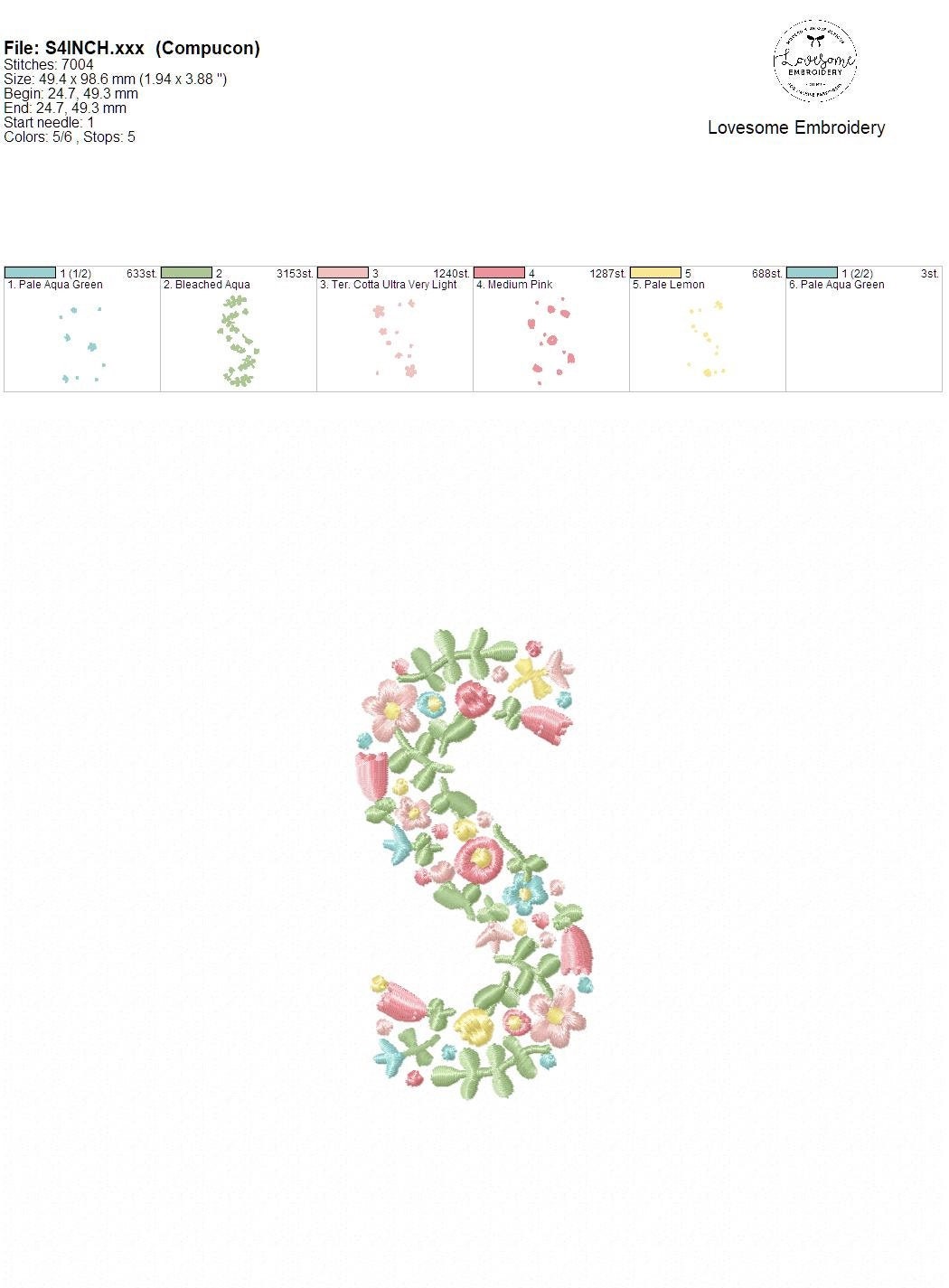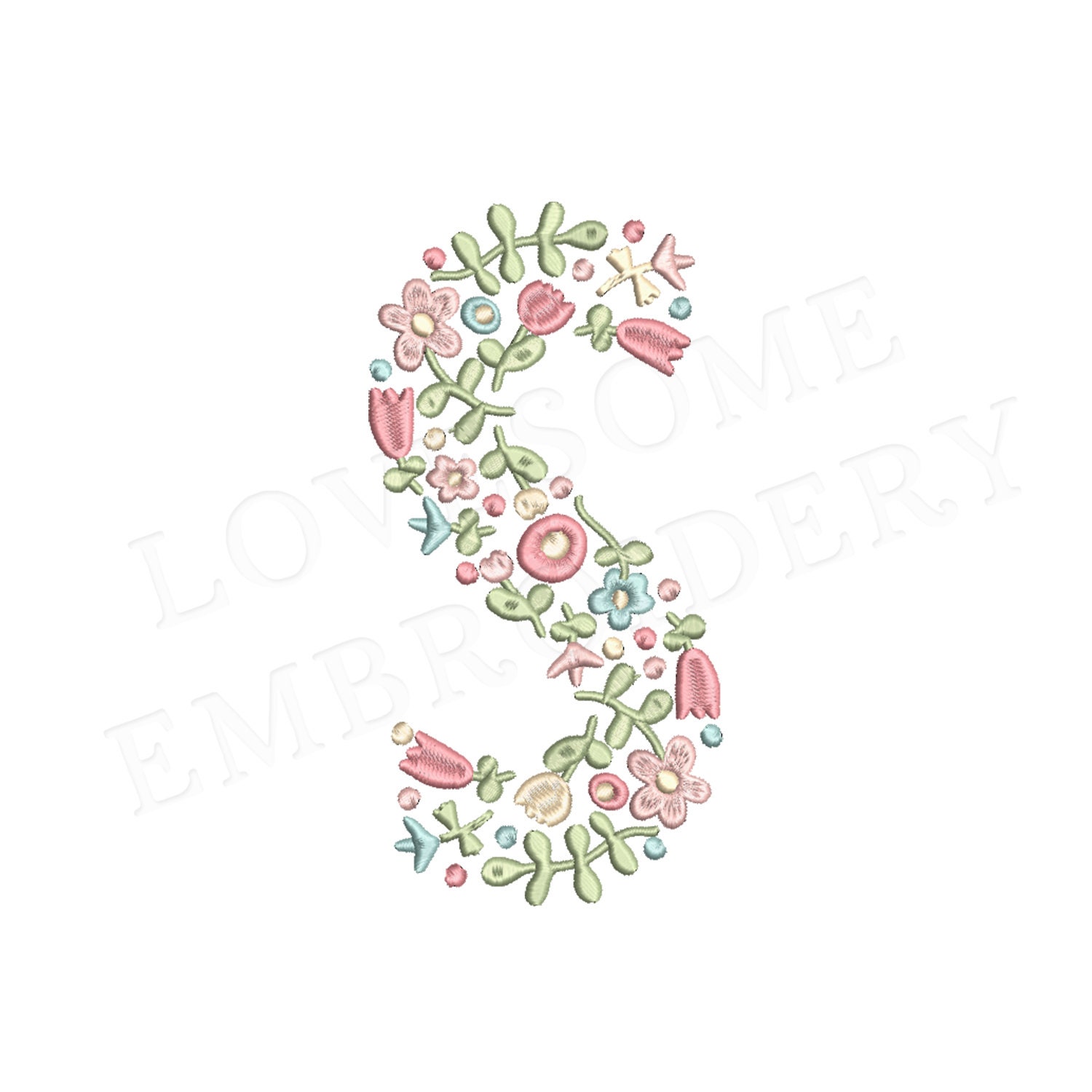 NEW Floral Letter S 4inch Machine Embroidery Design Dainty Flowers Letters in Spring Colors Digital Download | Lovesome Design