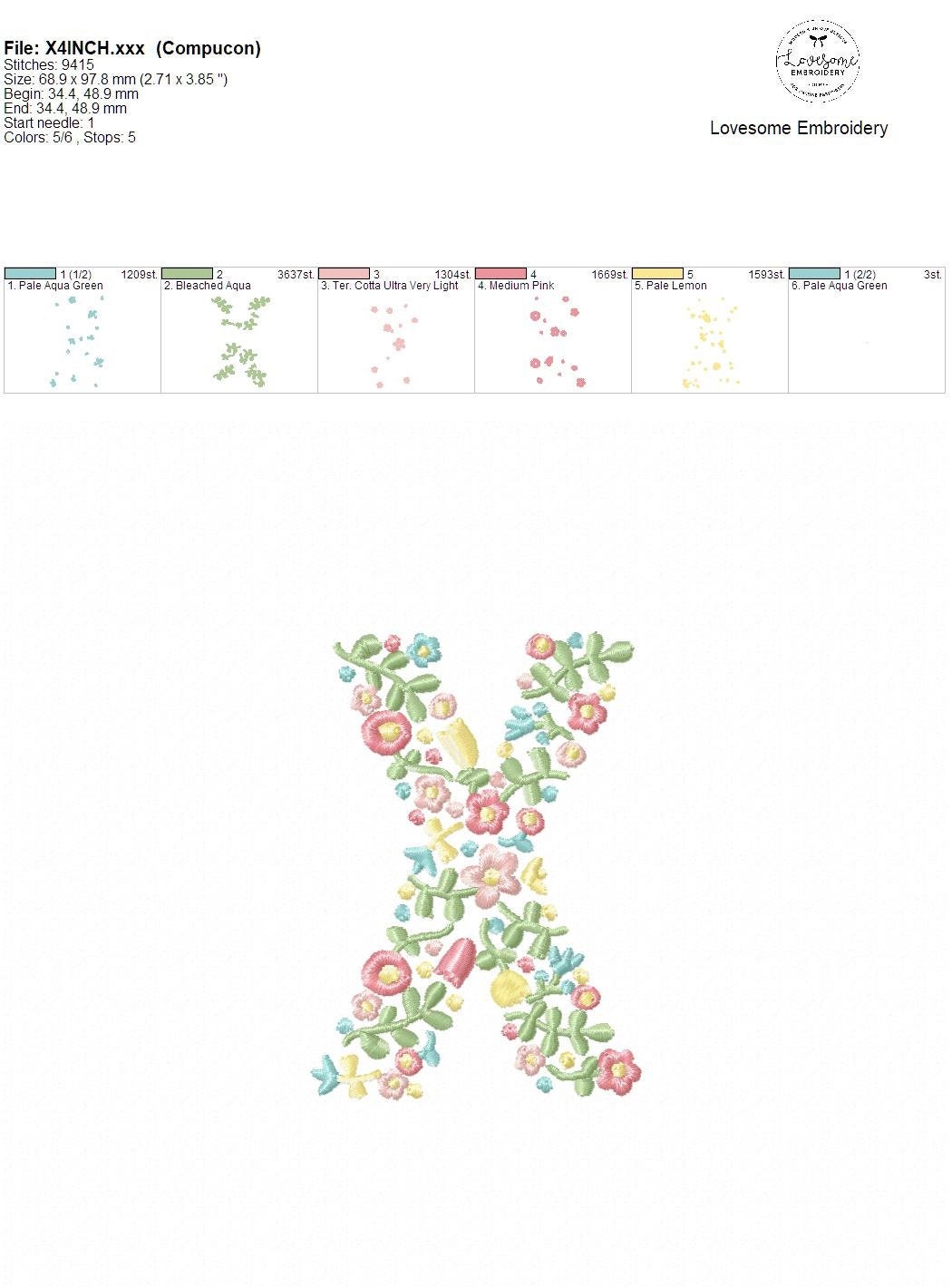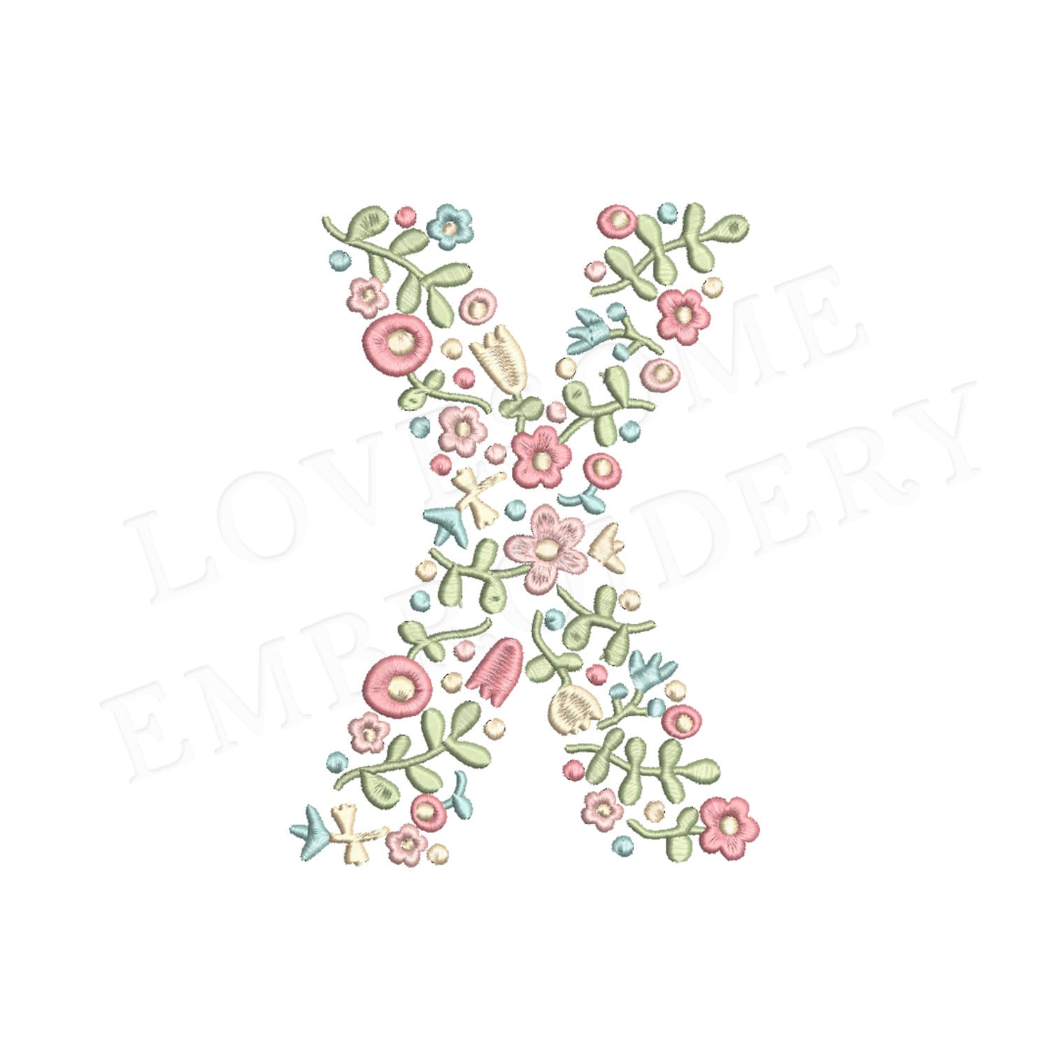 NEW Floral Letter X 4inch Machine Embroidery Design Dainty Flowers Letters in Spring Colors Digital Download | Lovesome Design