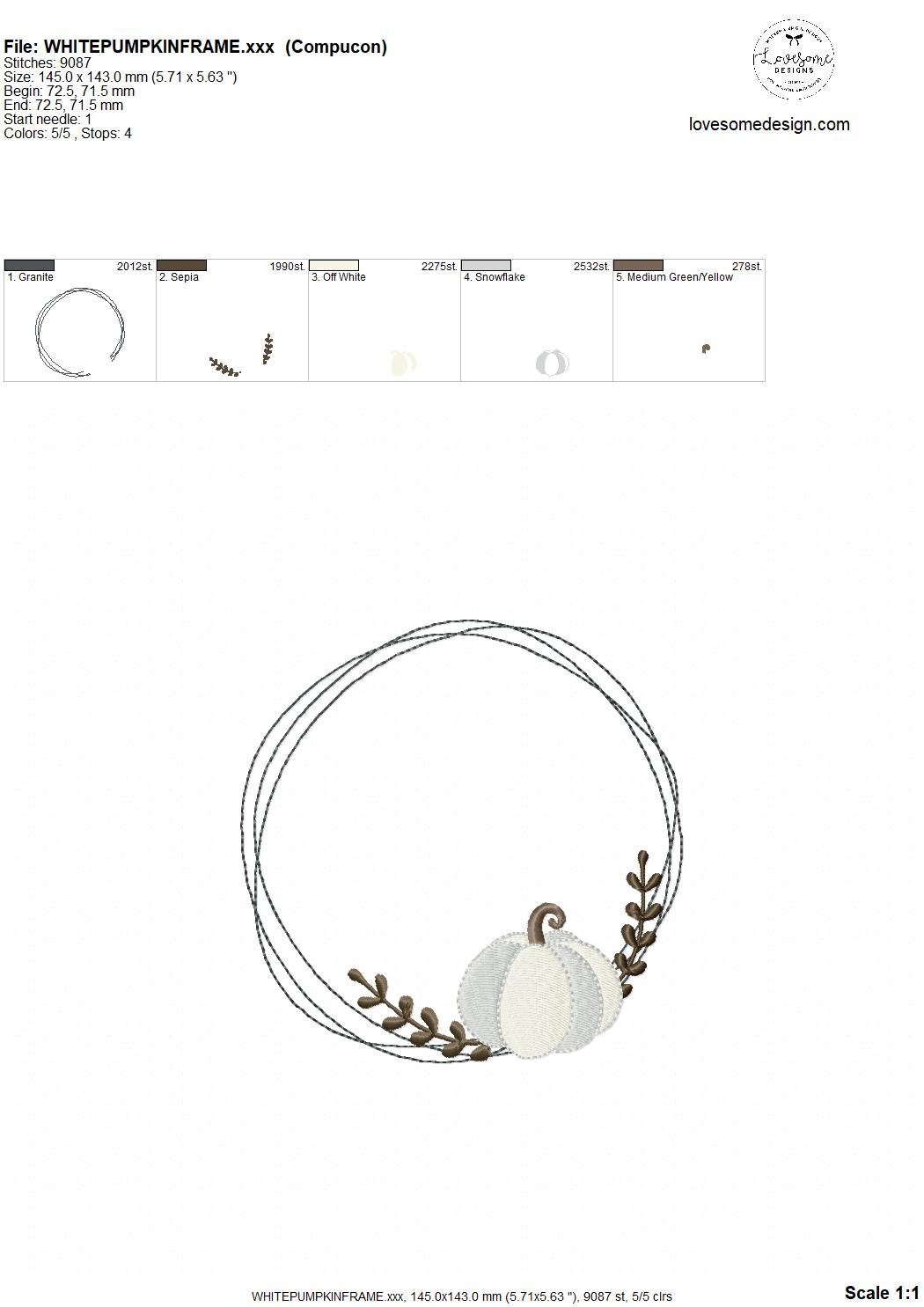 Pumpkin Wreath 6inch Machine Embroidery Design Digital Download | Lovesome Design