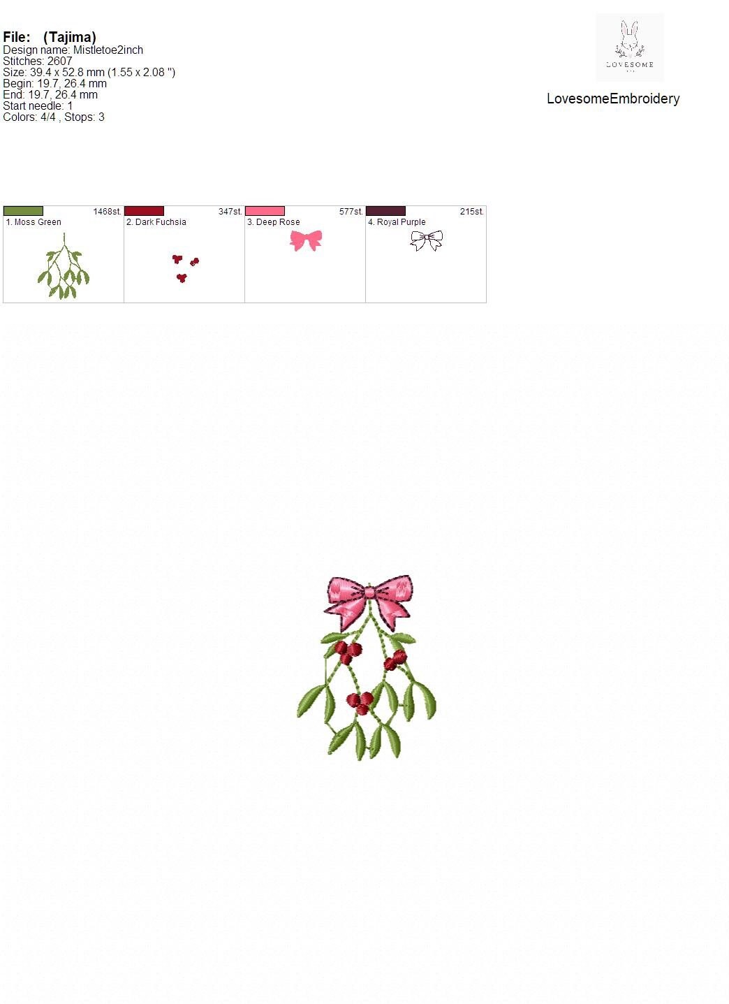 Mistletoe 2inch Embroidery Design, Modern Christmas Embroidery Design, Mistletoe with Bow Embroidery, | Lovesome Design
