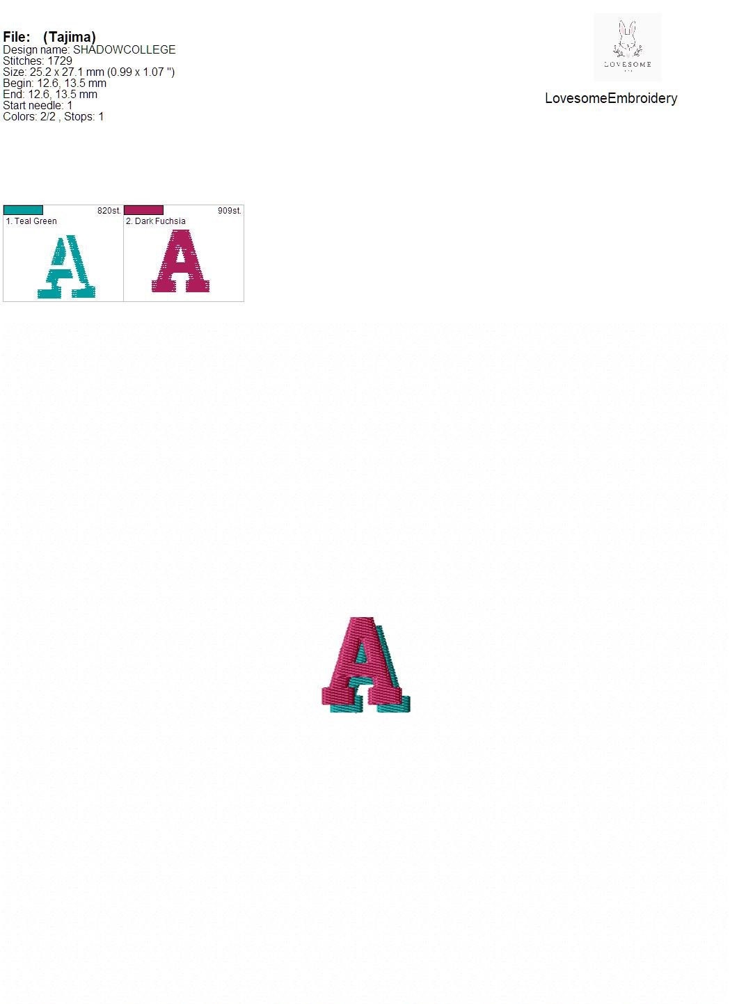 Shadow College 1inch Monogram Font A-Z Machine Embroidery Font Digital Download | Lovesome Design