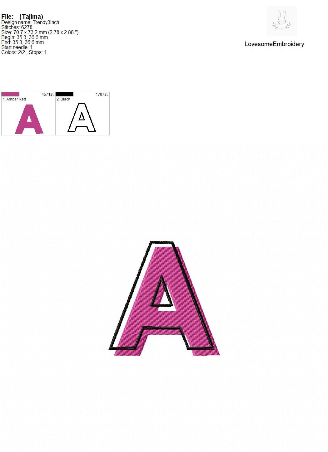 Trendy Monogram 3inch BX Font A-Z Machine Embroidery Font Digital Download | Lovesome Design