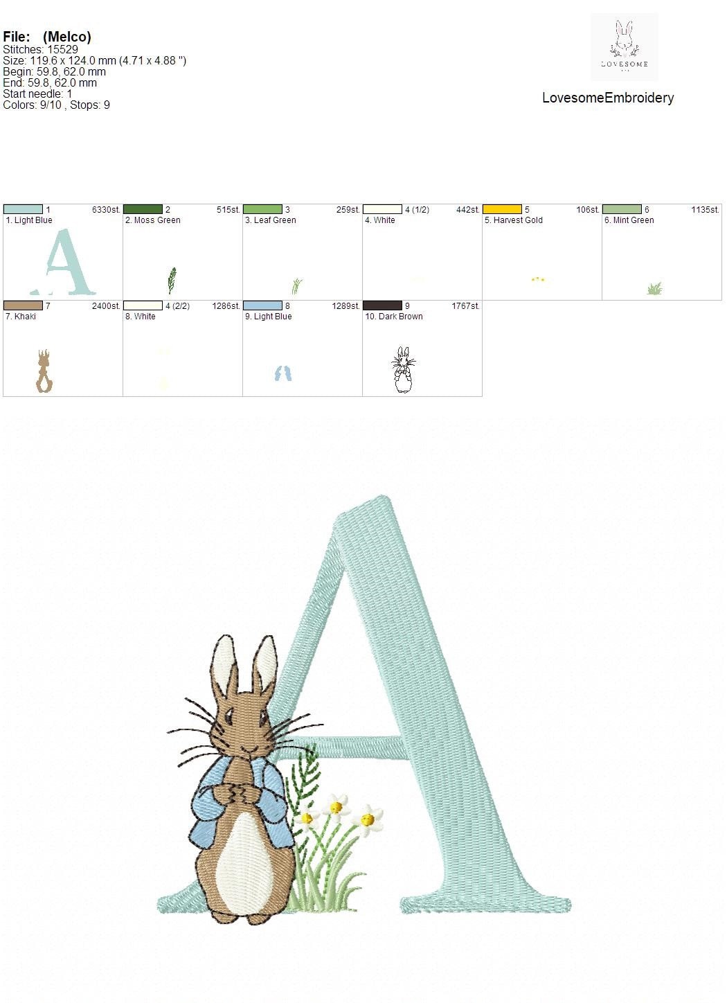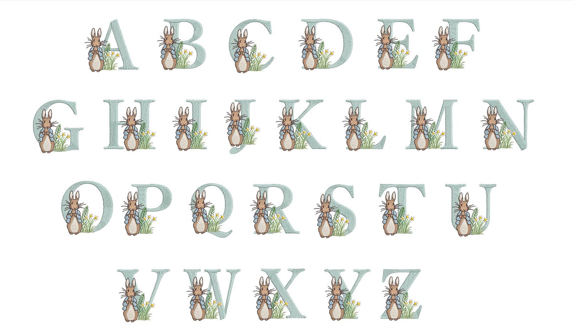 Peter Rabbit 5inch Alphabet A-Z Machine Embroidery Font Digital Download | Lovesome Design