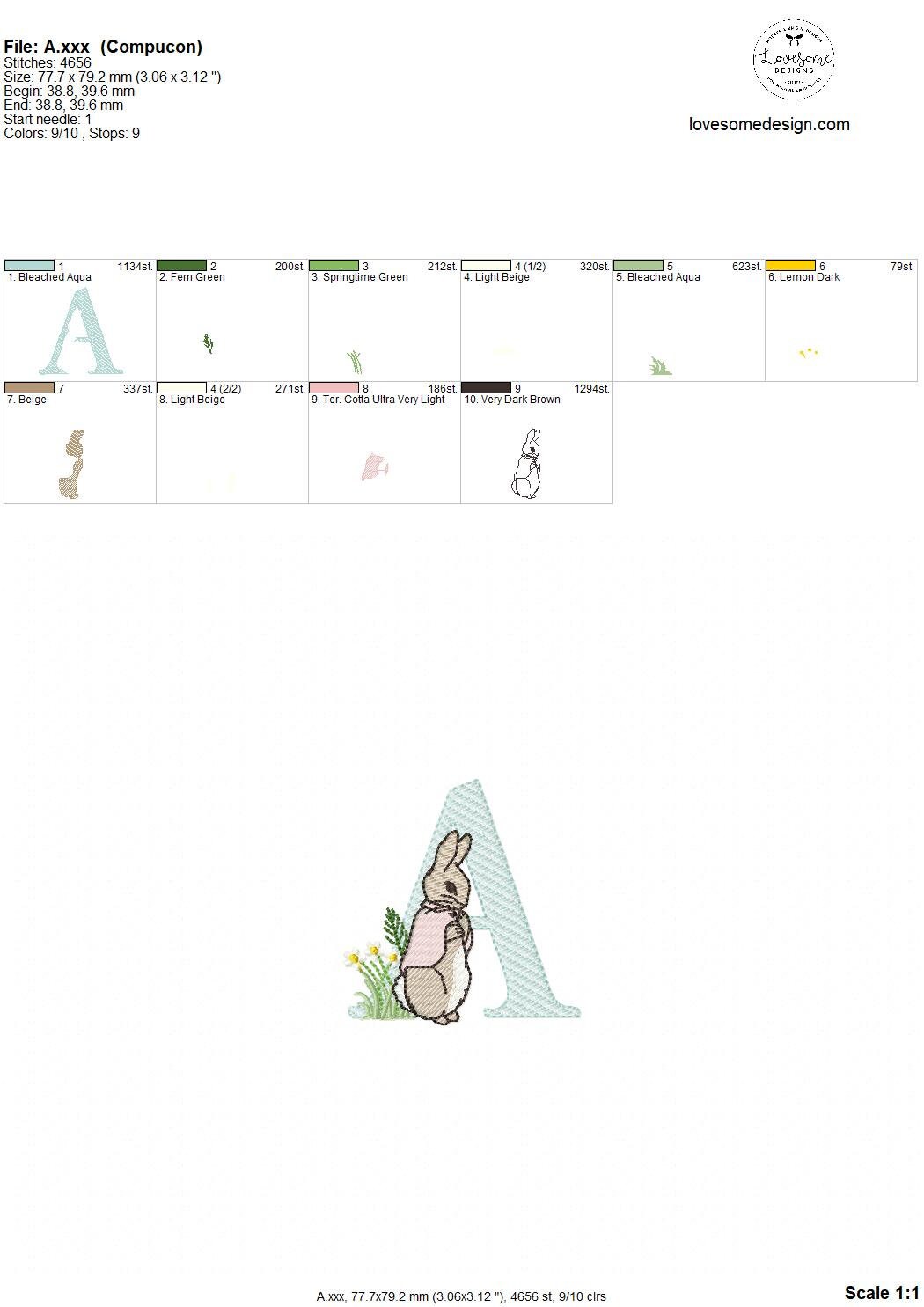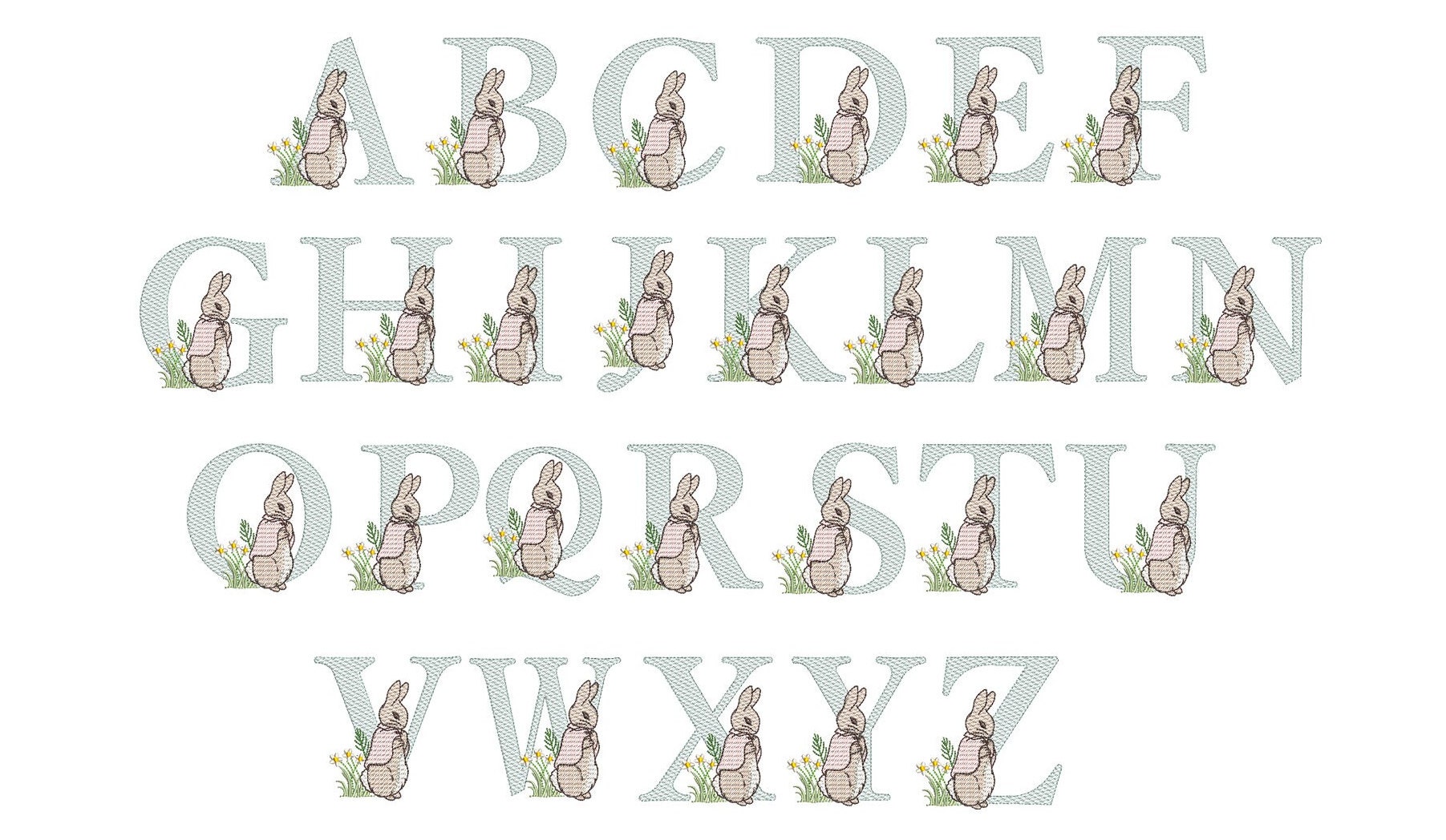 Cottontail Rabbit 3inch Quick Stitch Alphabet A-Z Machine Embroidery Font Digital Download | Lovesome Design