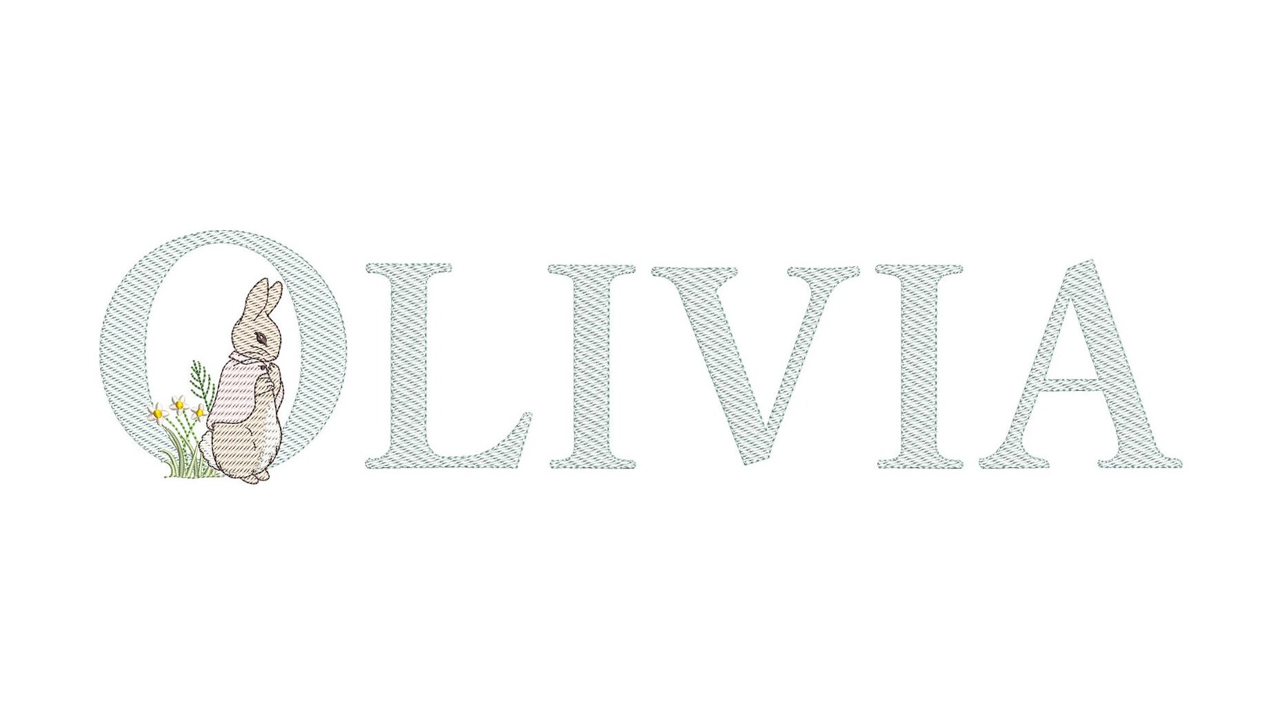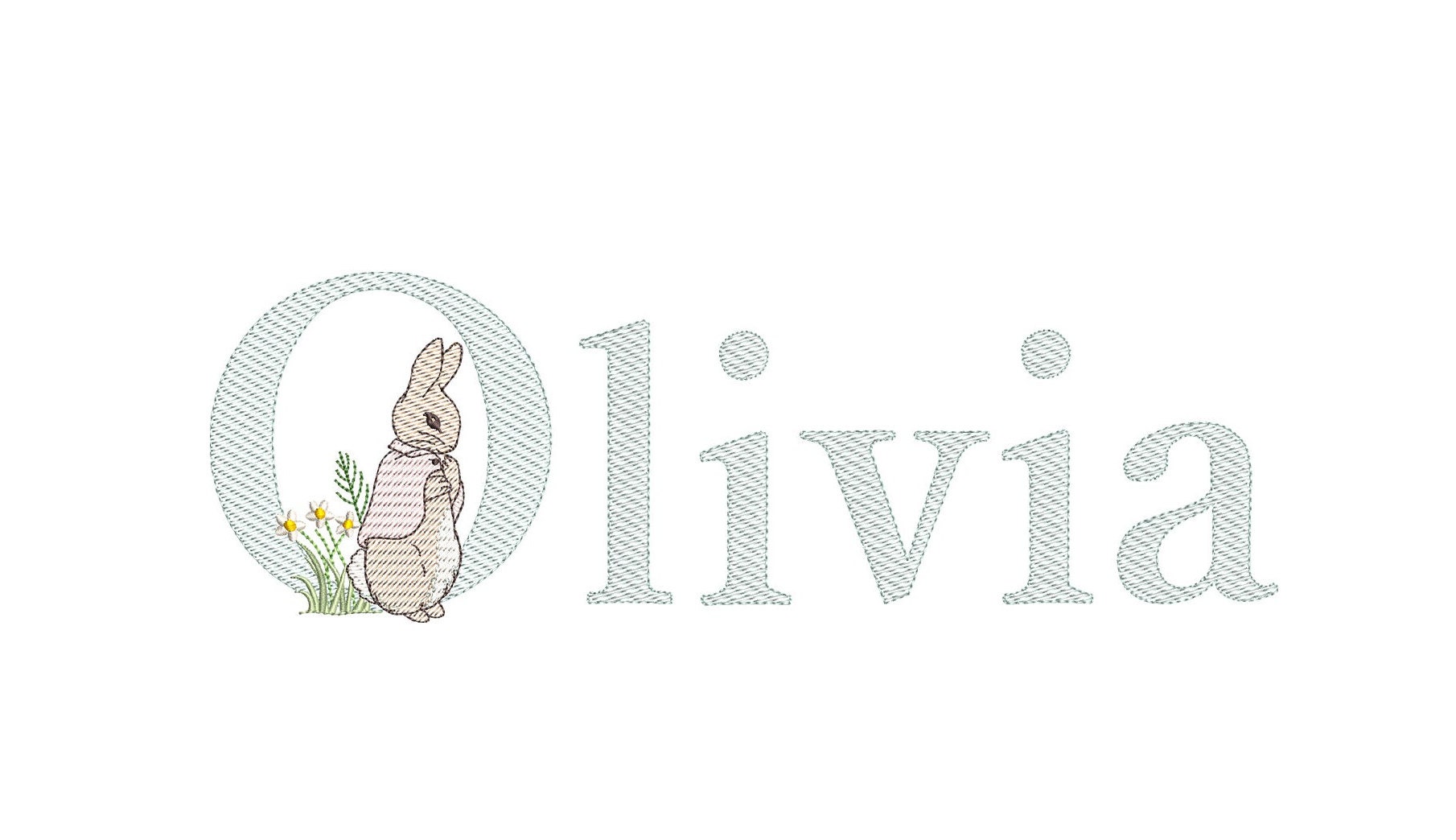 This listing features a machine embroidery font set which includes embroidery files of 26 uppercase monogram letters with quick stitch (light fill or sketch fill) Cottontail Rabbit design in 3inch size. (For the whole set, pls see the listing images.)