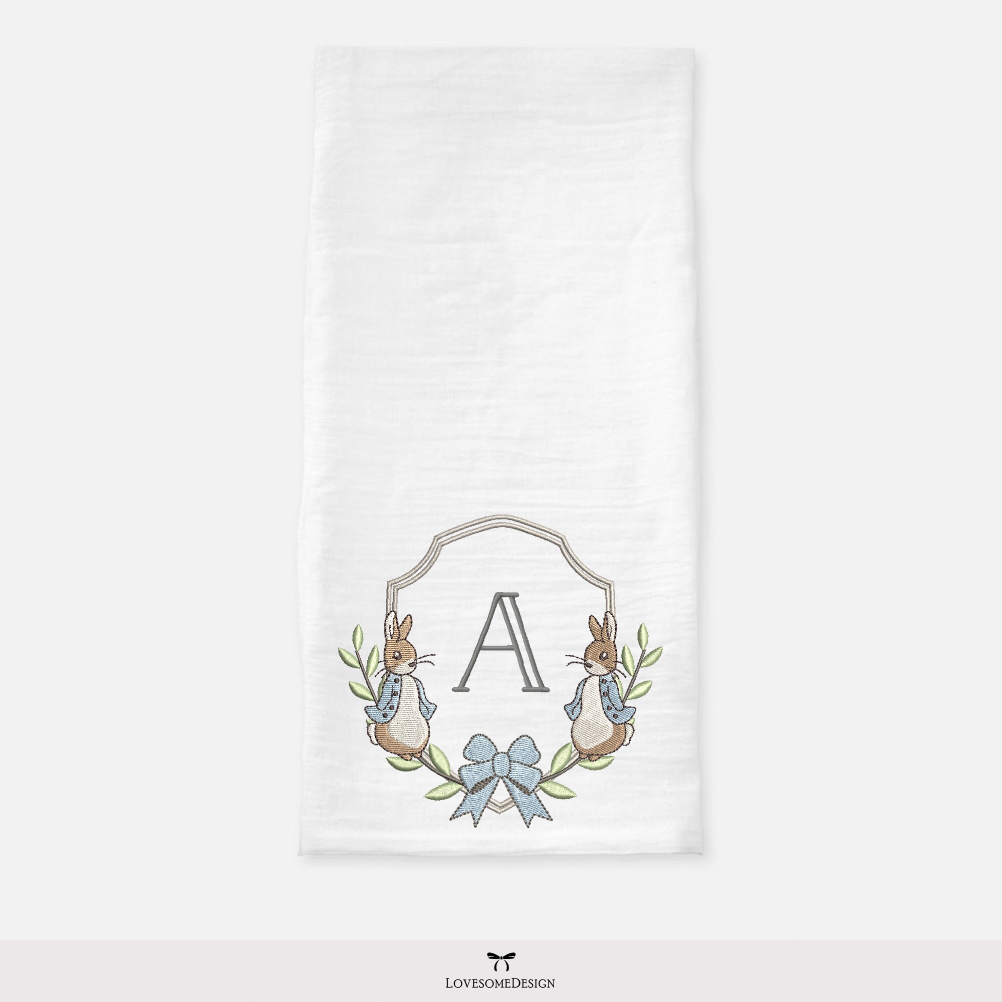 Peter Rabbits 4x4 Bow Baby Crest Machine Embroidery Design File Digital Download | Lovesome Design