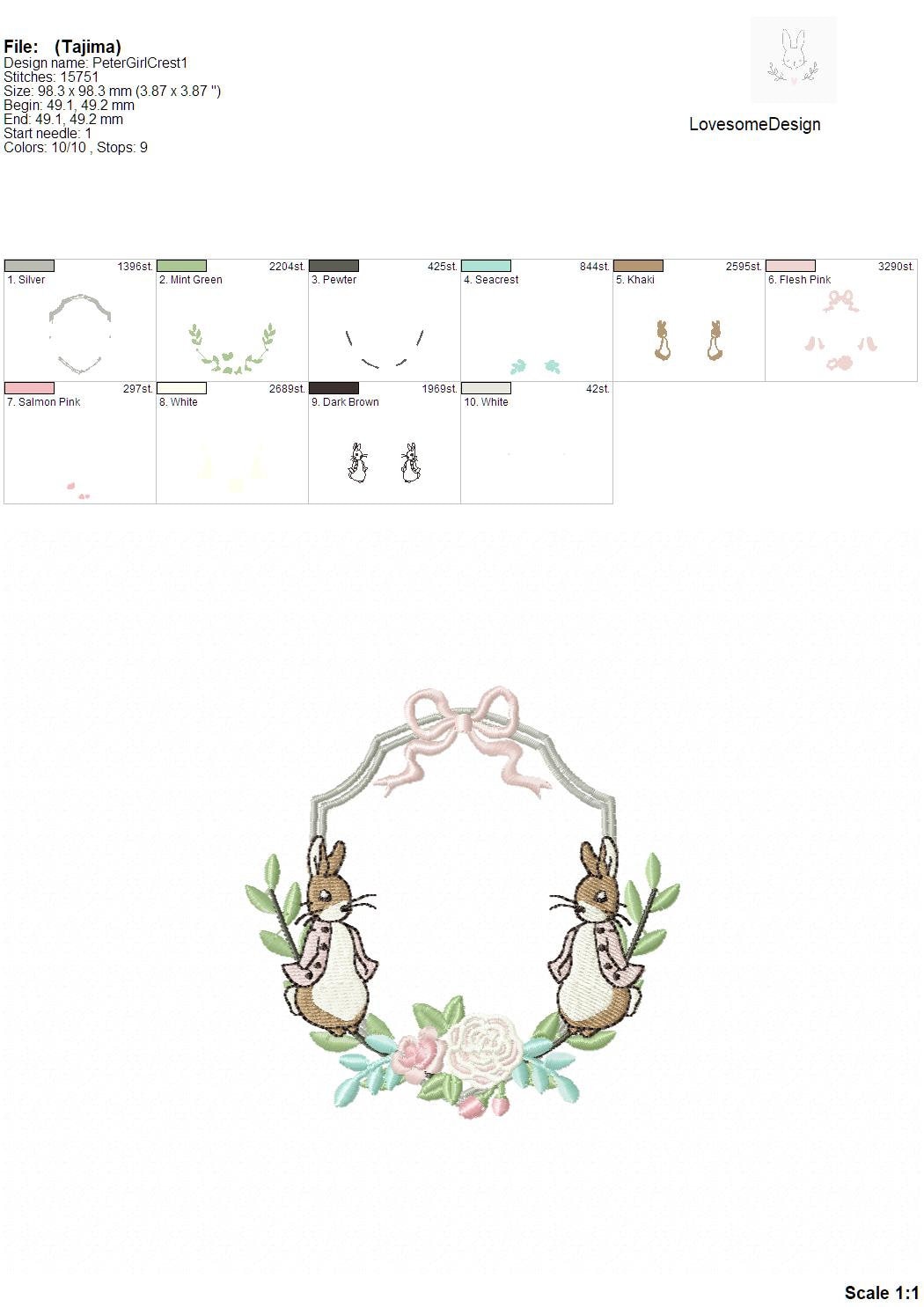 You can find the details like exact size, stitch count and color chart on the technical document which can be viewed within listings images.