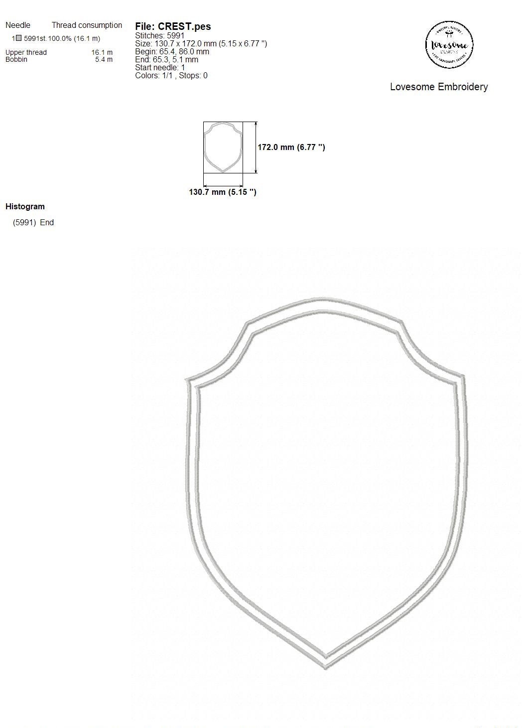 Crest Seven Sizes Machine Embroidery Design, Blank Crest Multisize Customizable Embroidery Digital File | Lovesome Design
