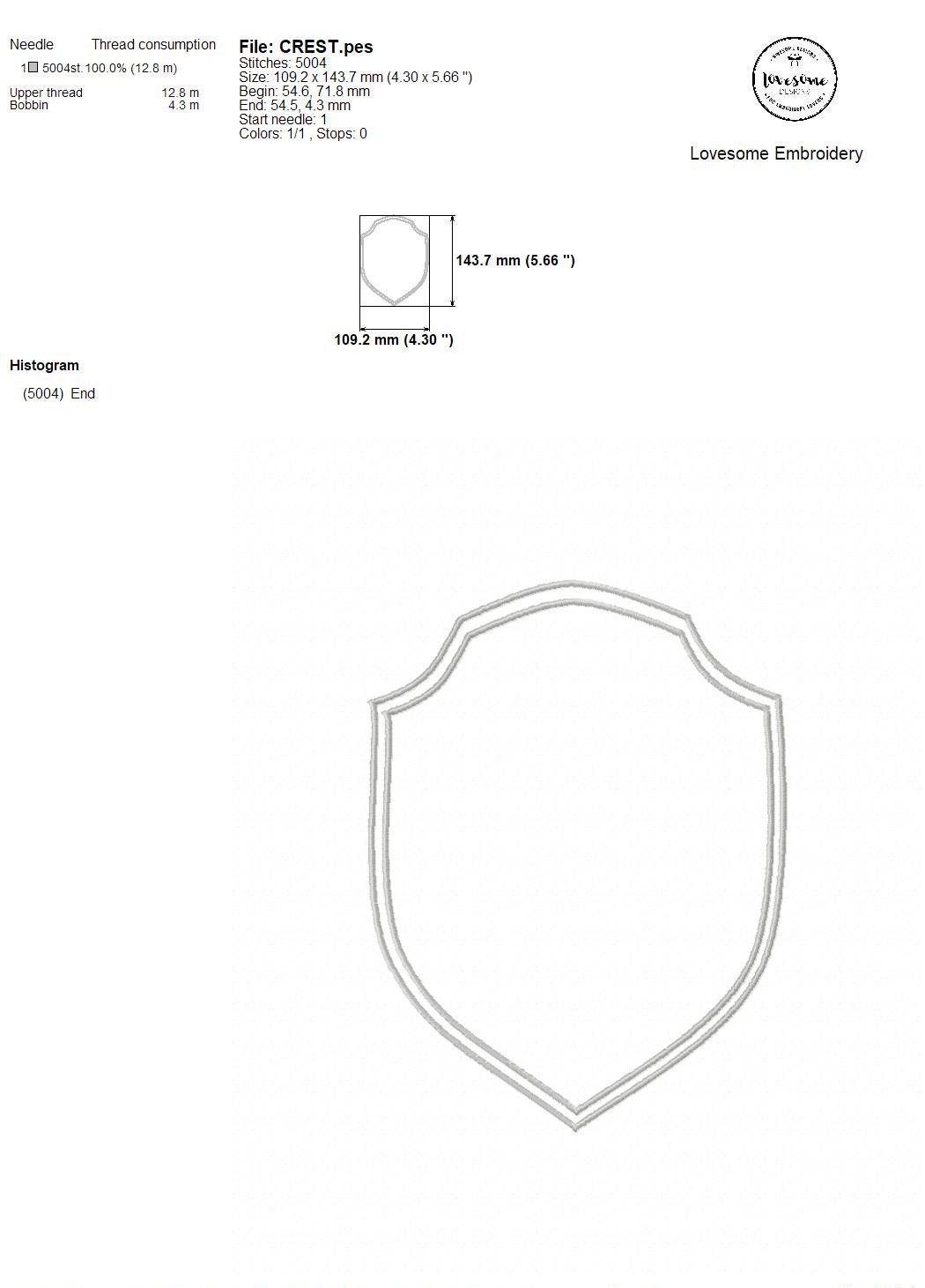 This listing includes one blank crest design for machine embroidery in seven sizes, each appr. 2.5inch, 3inch, 3.5inch, 4inch, 5inch, 6inch and 8inch size for embroidery hoops in different sizes.