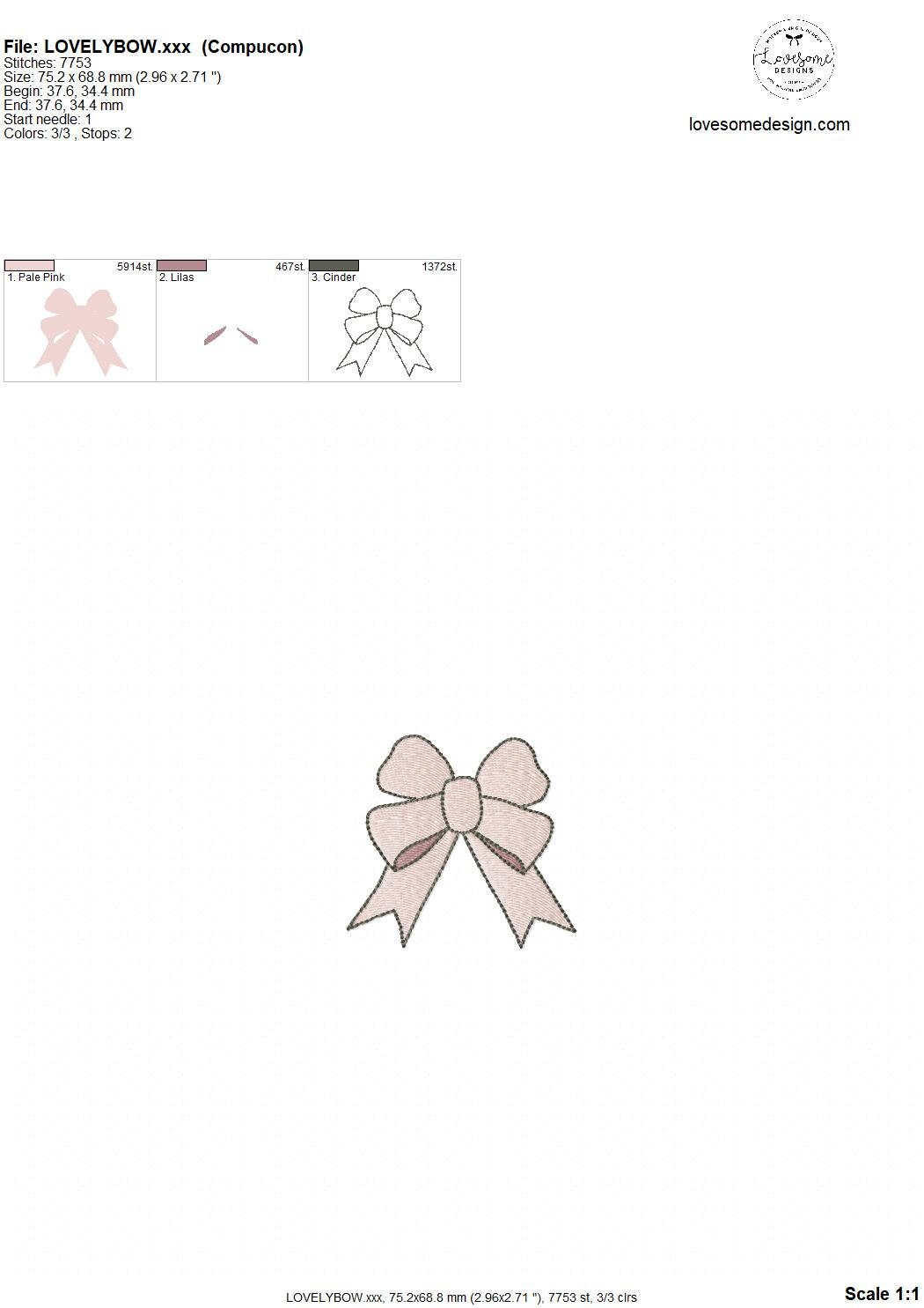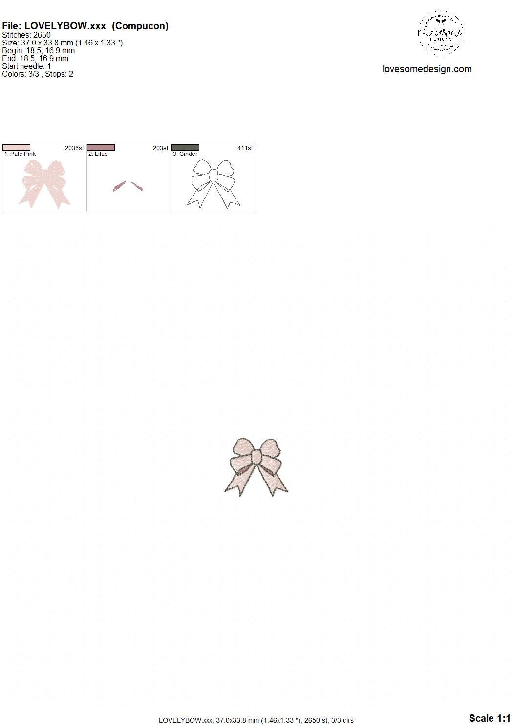 Lovely Bow Five Sizes Machine Embroidery Design, Cute Mini Bows Multiple Size Customizable Embroidery Digital File | Lovesome Design