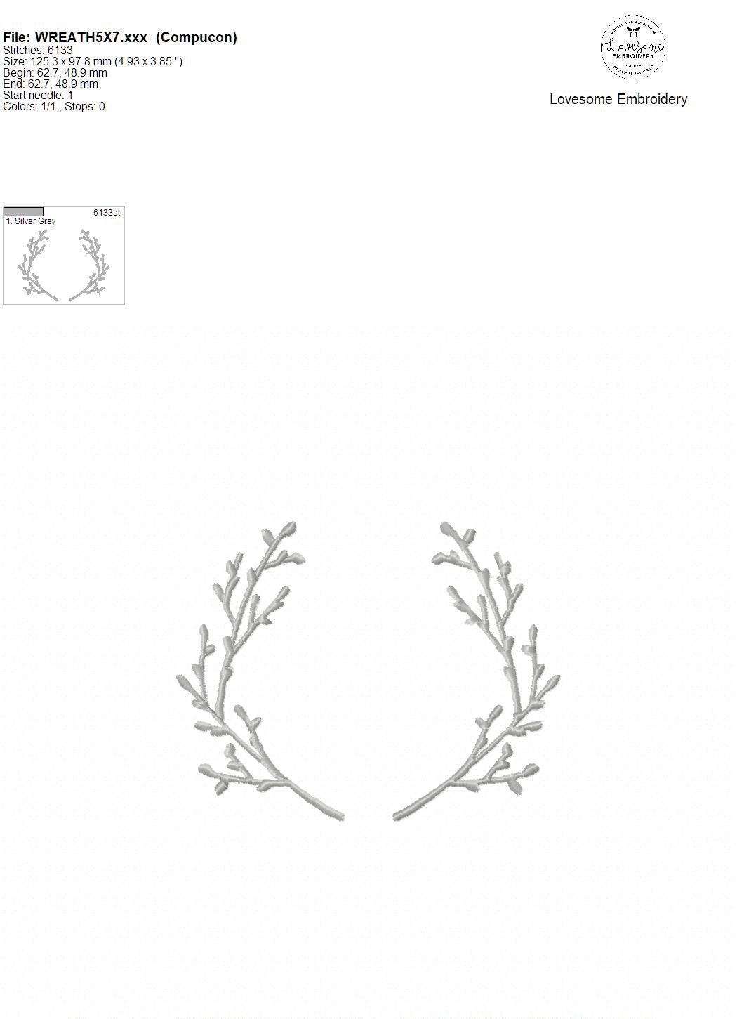 This listing features a machine embroidery file of an elegant wreath design in 5 inch size.