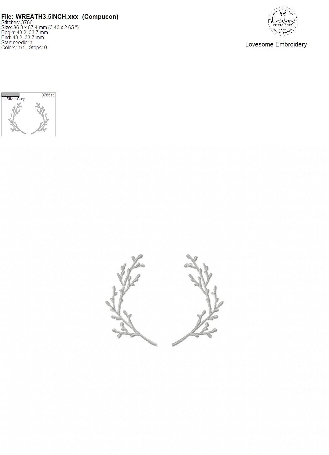 This listing features a machine embroidery file of an elegant wreath design in 3.5 inch size.