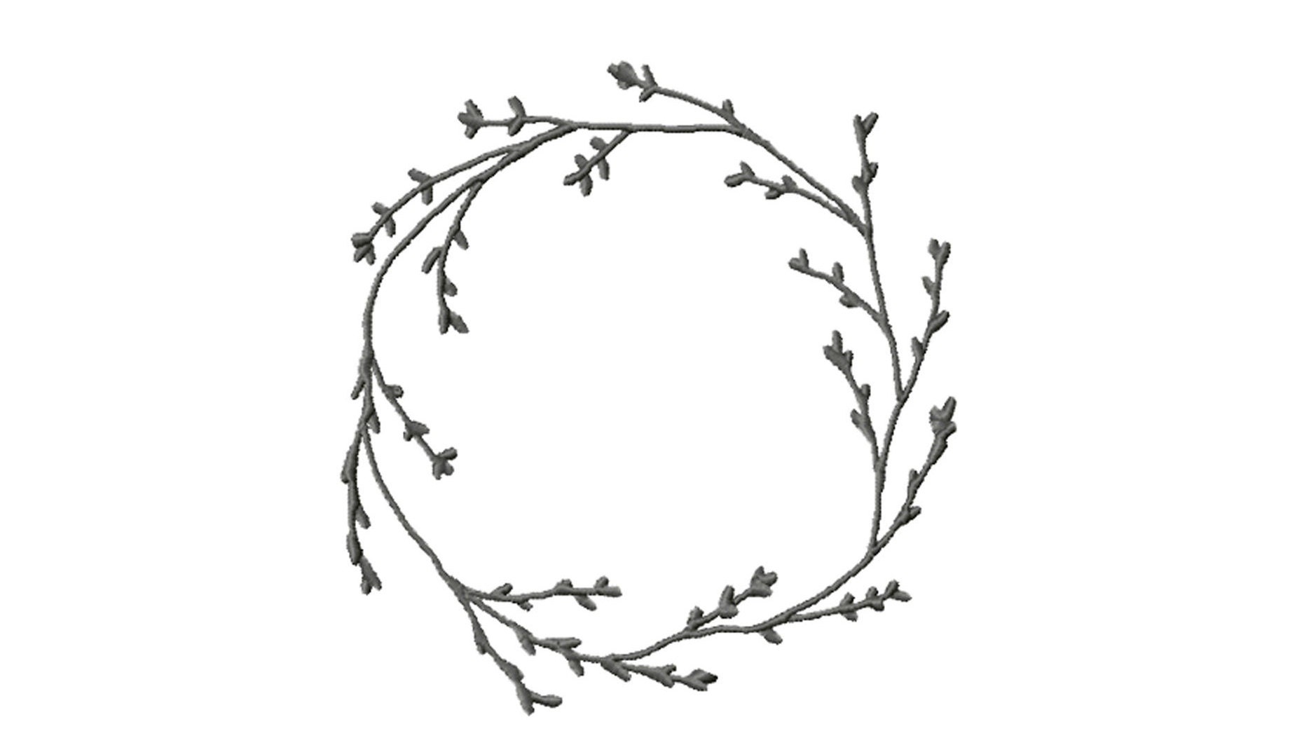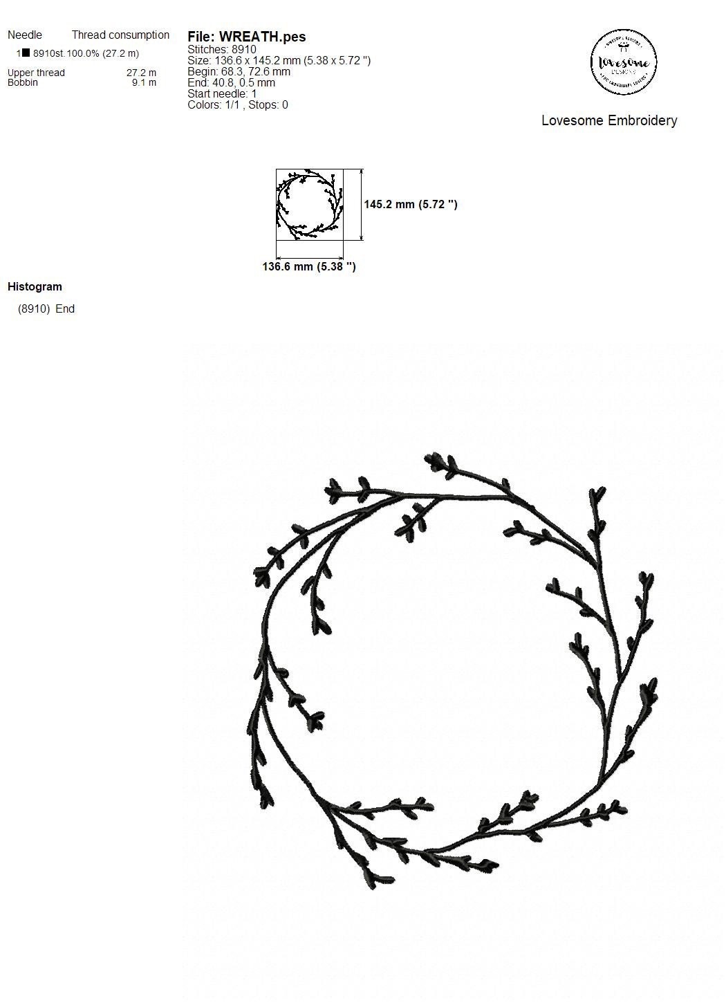 This listing features a machine embroidery file of a pretty branch wreath design in 6 inch size.