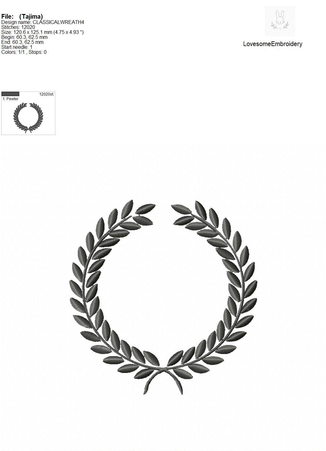 This listing features a machine embroidery file of a classical laurel wreath design in 5 inch size.