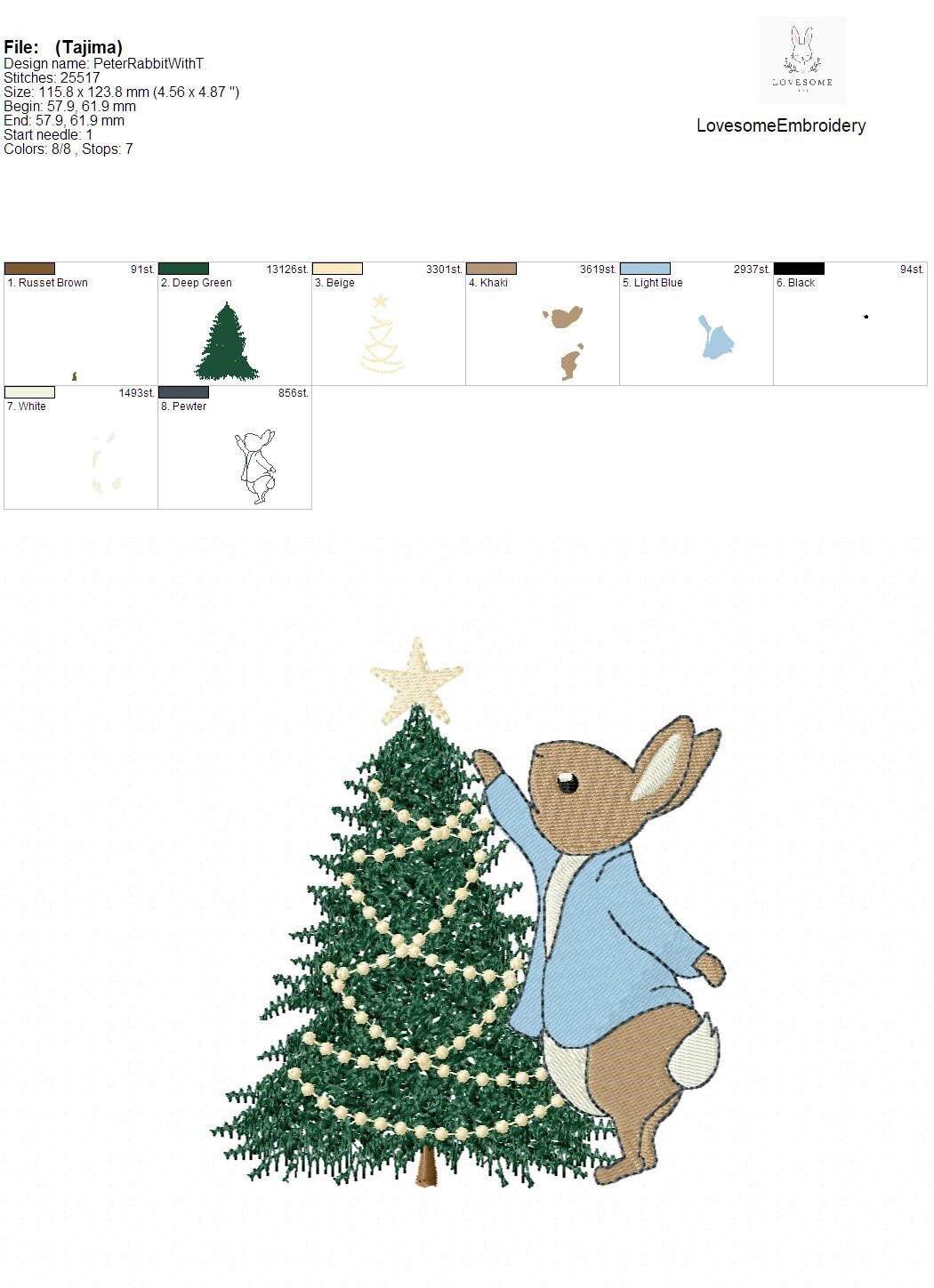 Christmas Tree 5inch Peter Rabbit Embroidery Design, Bunny Decorating the Holiday Tree Machine Embroidery File | Lovesome Embroidery