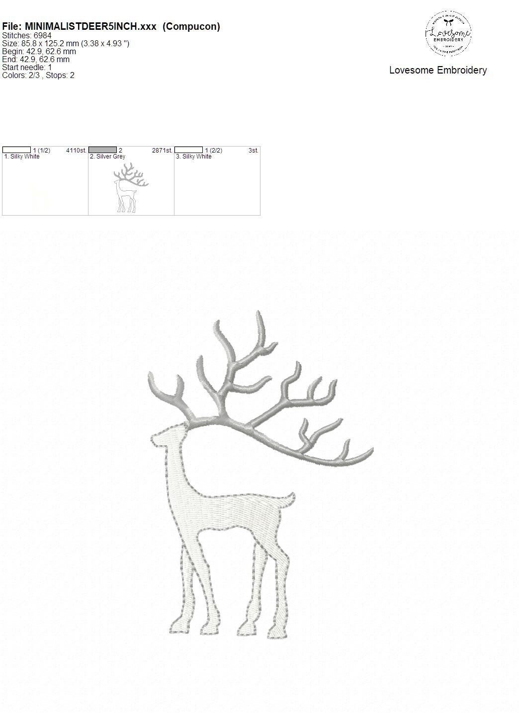 Minimalist Deer 5inch Embroidery Design, Modern Scandinavian Elegant Deer, Chic Reindeer Embroidery File | Lovesome Embroidery