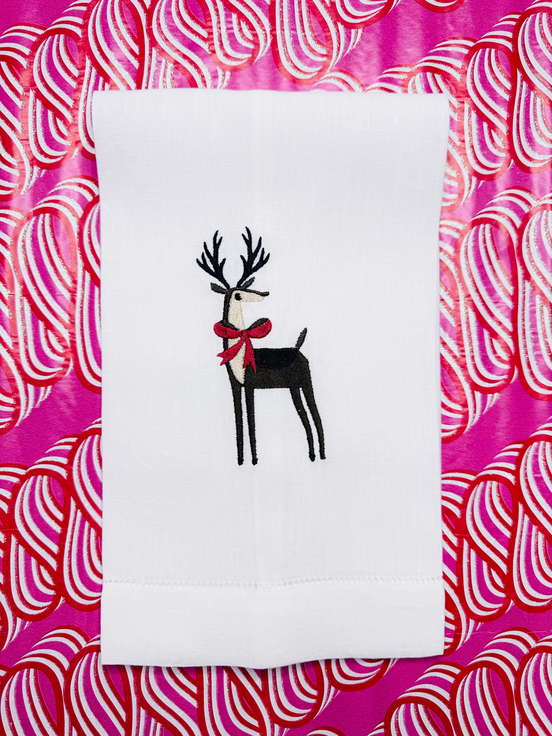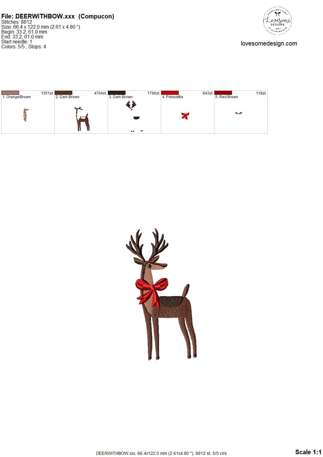 Modern Elegant Deer with Red Bow Embroidery Design, Fancy Holiday Decorative Reindeer Embroidery Design, Stylish Cute Reindeer Embroidery Design, Deer Embroidery Design, Reindeer Decorative Design in 5inch size.