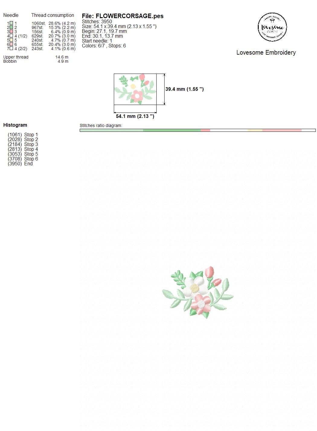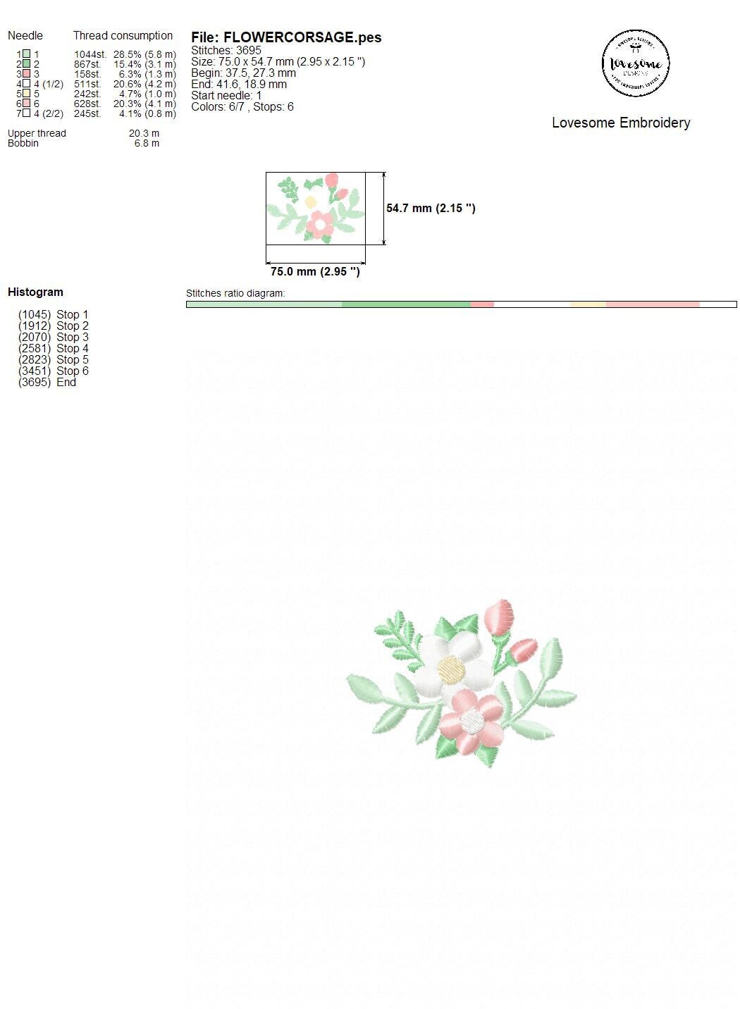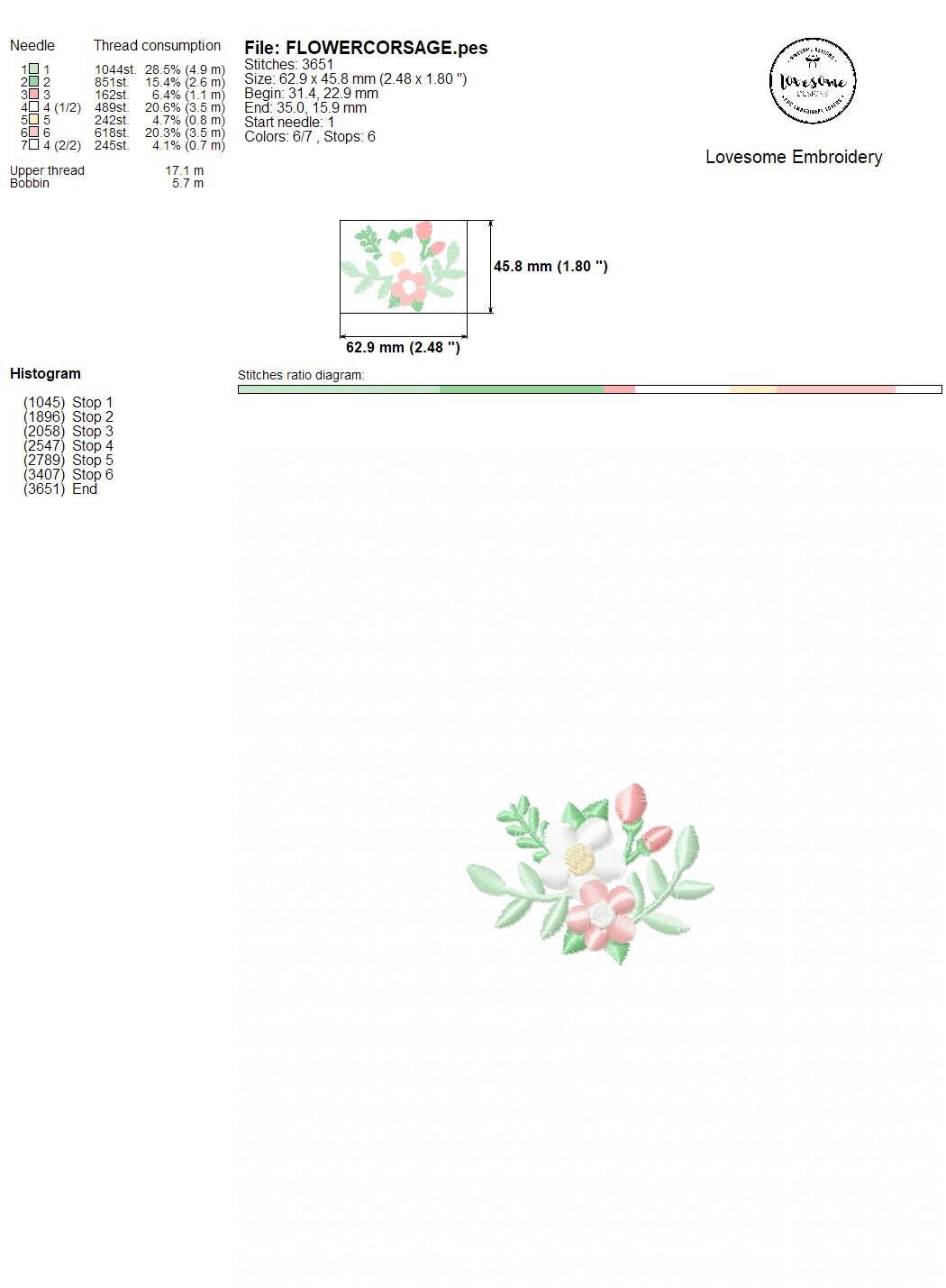 Floral Corsage Multisize Embroidery Design, Floral Embroidery Design, Modern Flower Corsage Digital Download | Lovesome Design