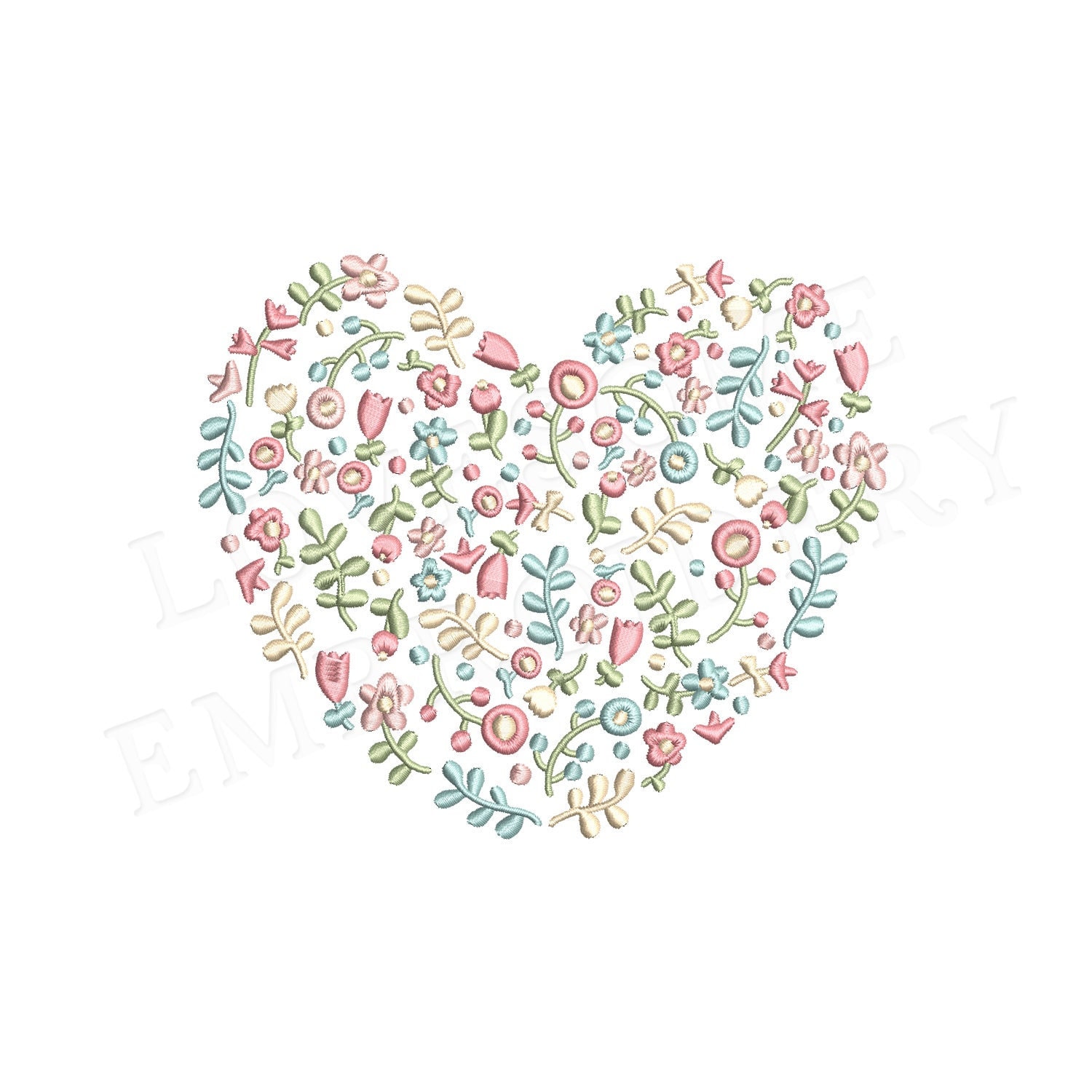 Floral Fill Heart 4inch Embroidery Design Machine Embroidery File Digital Download | Lovesome Embroidery