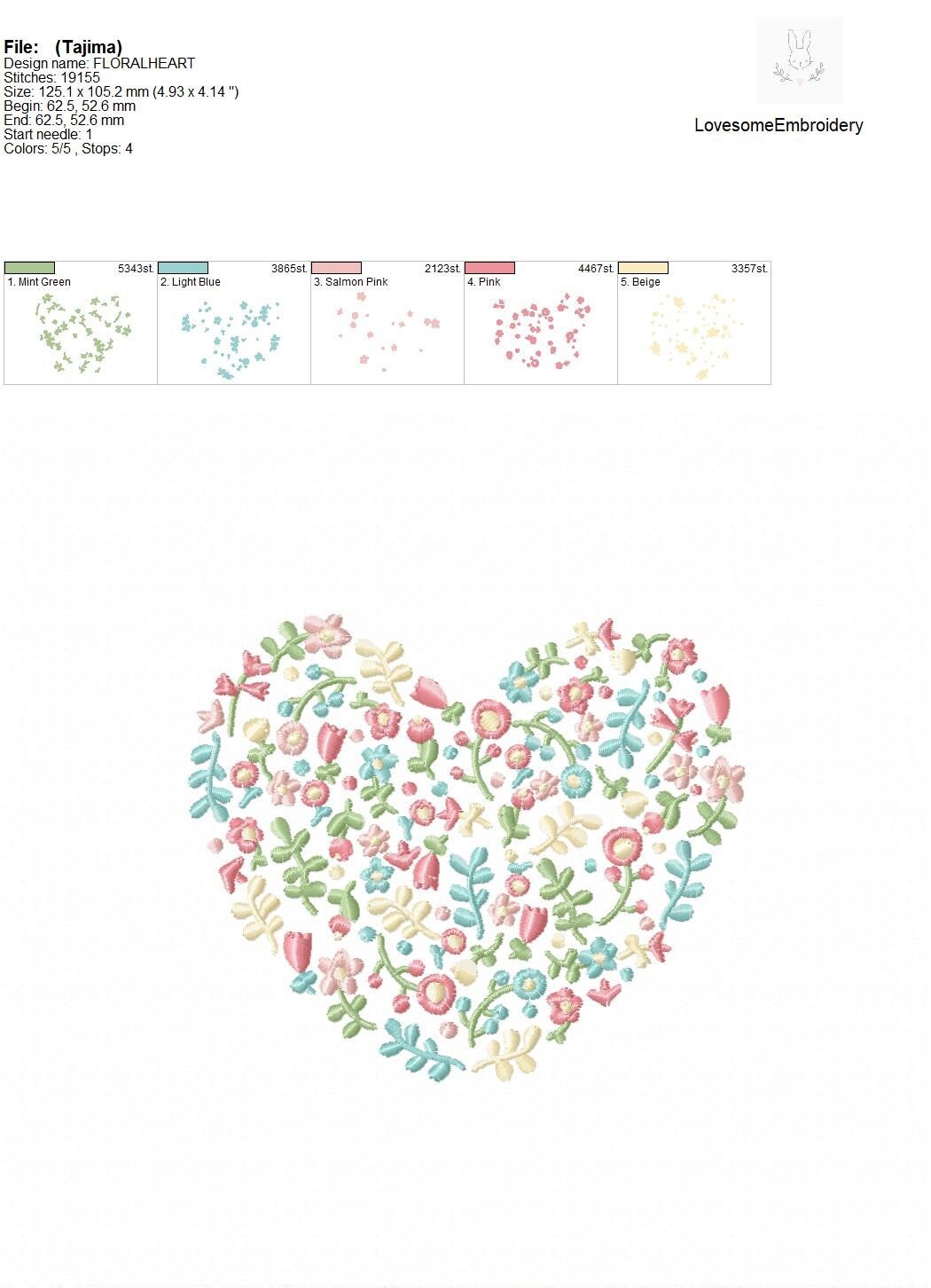 Floral Fill Heart 5inch Embroidery Design Machine Embroidery File Digital Download | Lovesome Embroidery